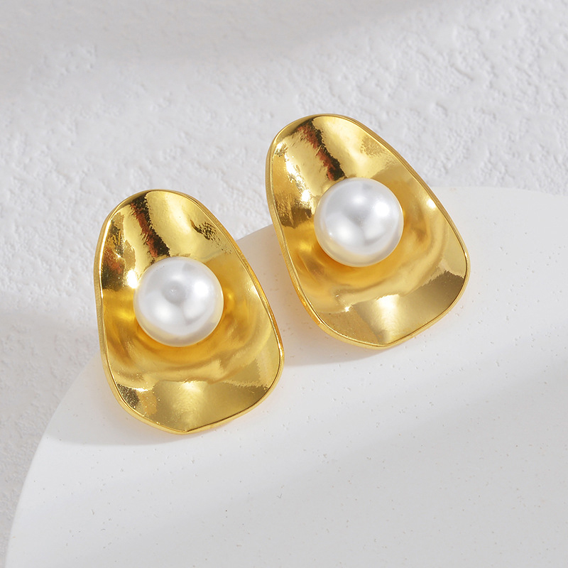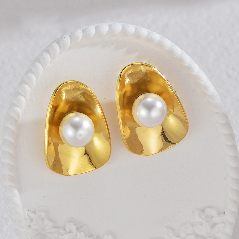 - Stainless Steel Stud Earrings, 304 Stainless Steel, with Plastic Pearl