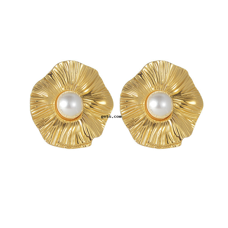 Stainless Steel Stud Earrings, 304 Stainless Steel, with Plastic Pearl, Flower, 18K gold plated, fashion jewelry & for woman, Sold By Pair