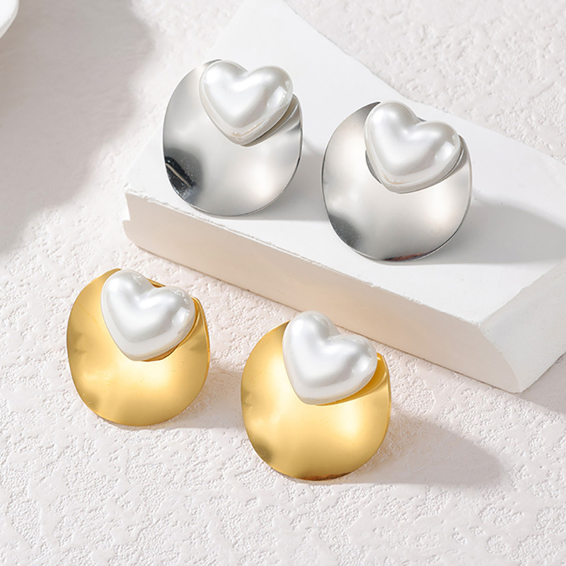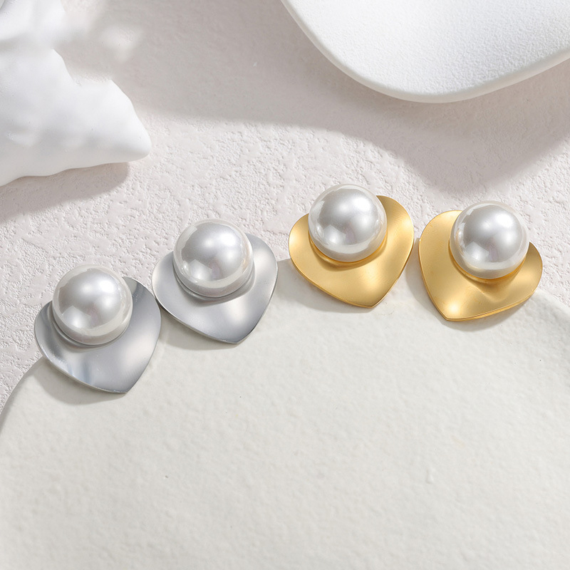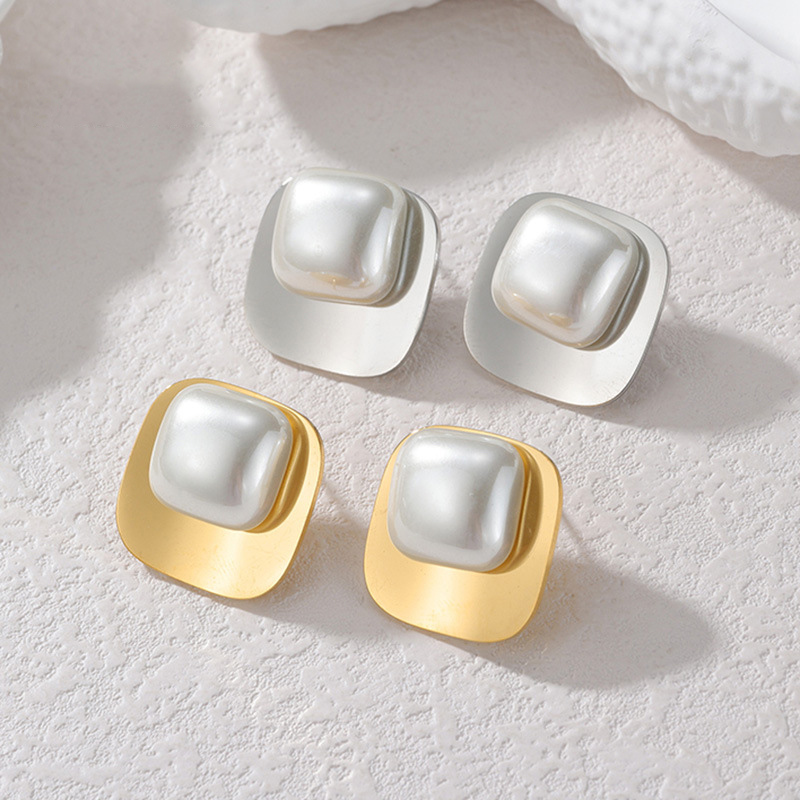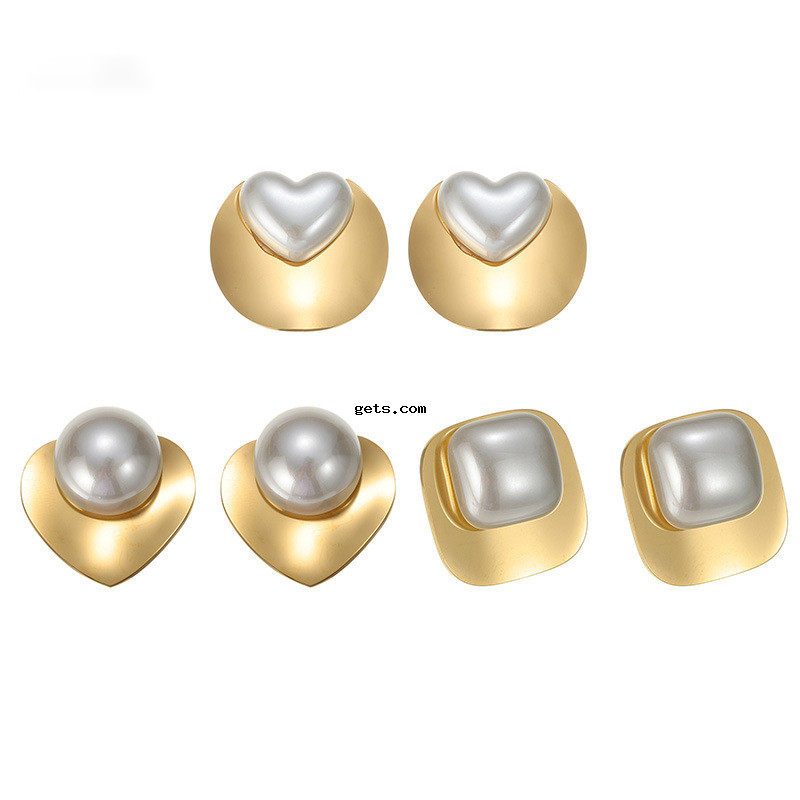 Stainless Steel Stud Earrings, 304 Stainless Steel, with Plastic Pearl, plated, fashion jewelry & different styles for choice & for woman, more colors for choice, Sold By Pair