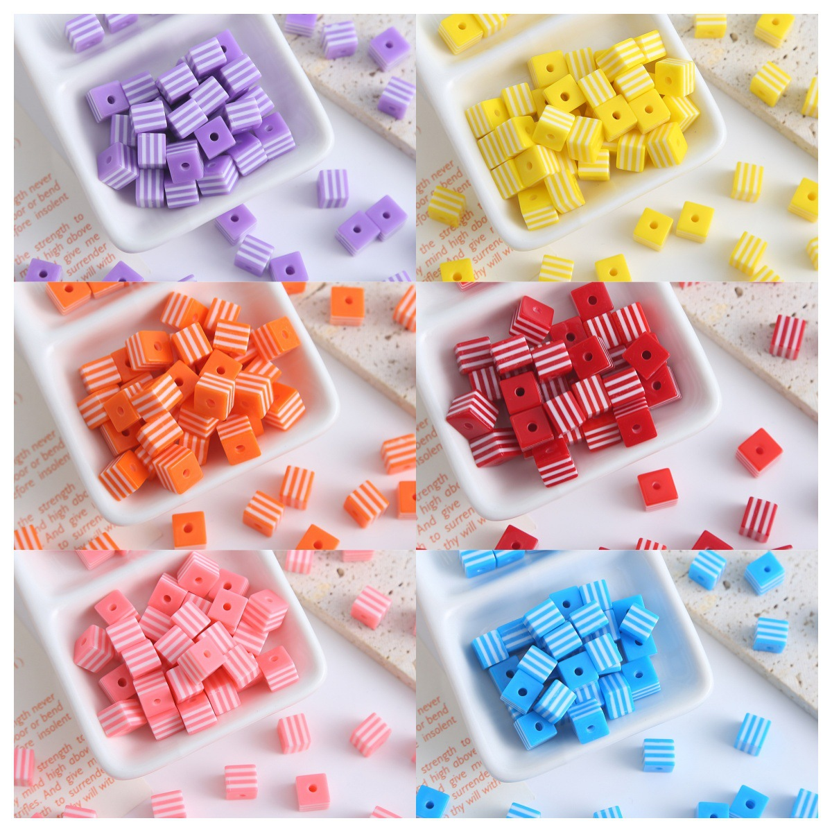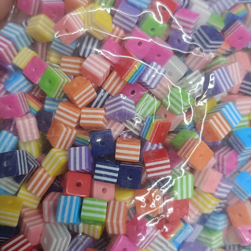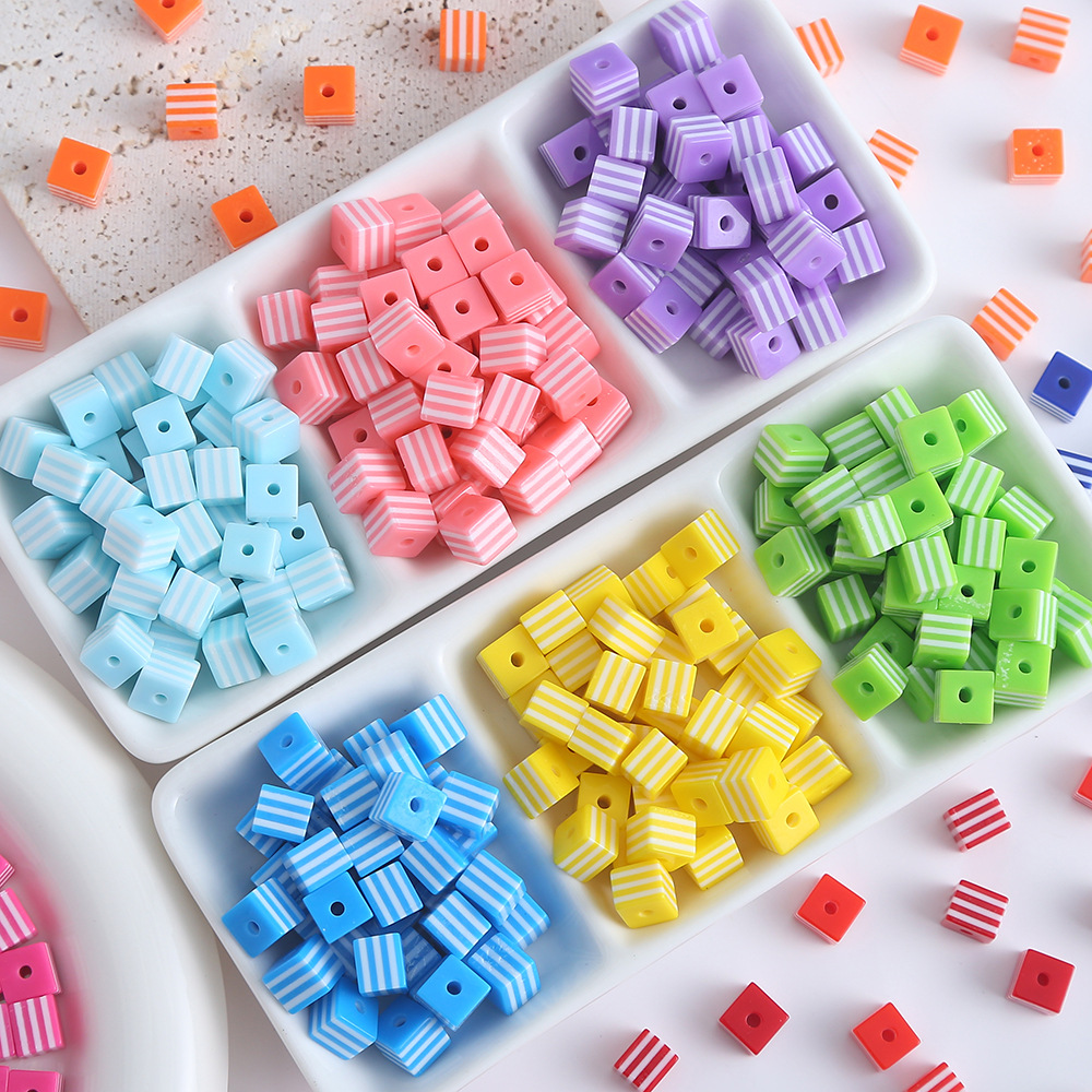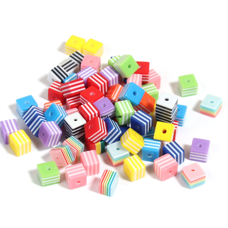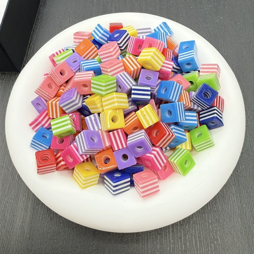 - Striped Resin Beads, Round, red