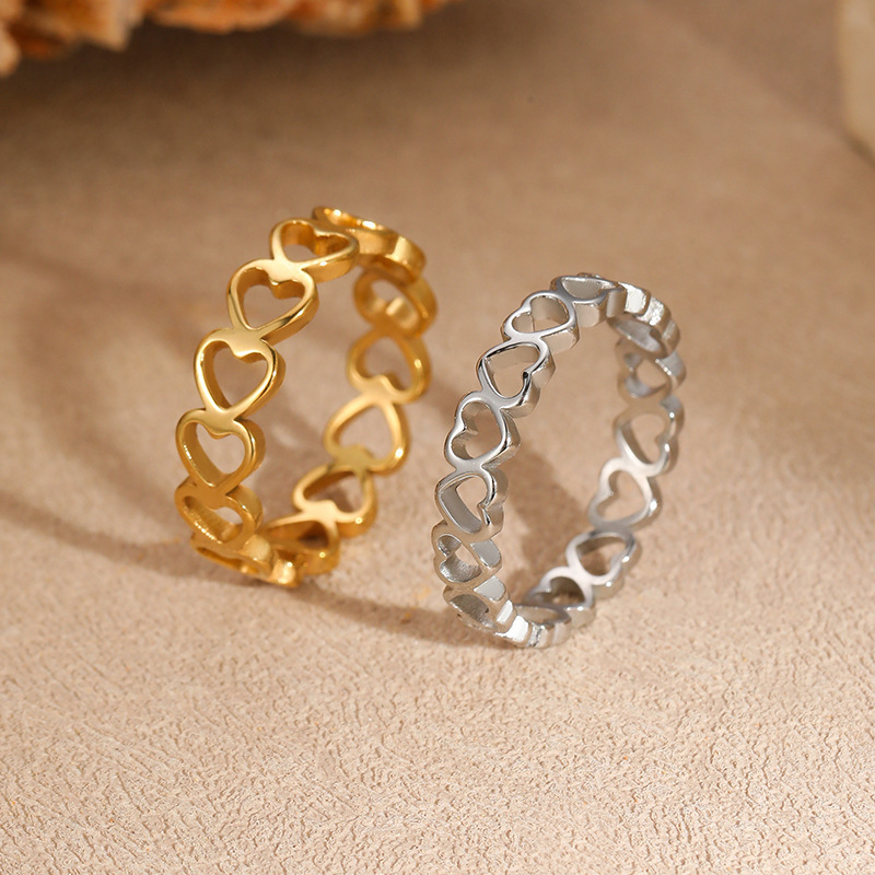 Titanium Steel Finger Ring, Heart, plated, different size for choice & for woman & hollow, more colors for choice, US Ring Size:5-10, Sold By PC