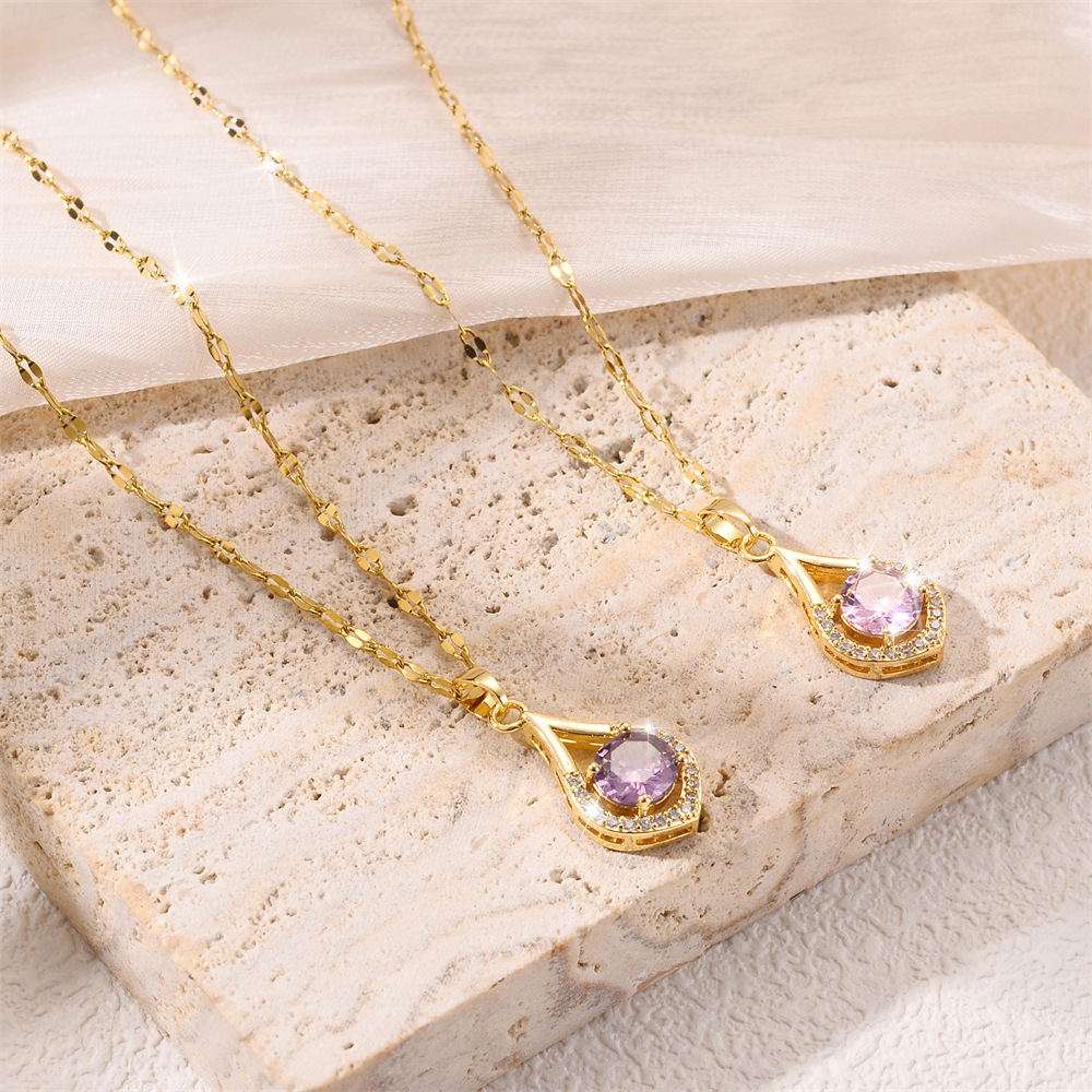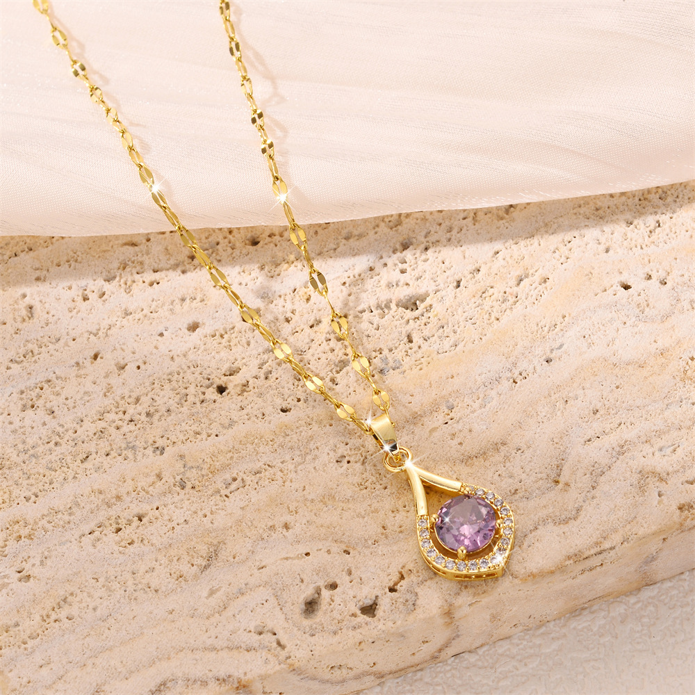Titanium Steel Necklace, Teardrop, plated, fashion jewelry & micro pave cubic zirconia & for woman, more colors for choice, Sold By PC