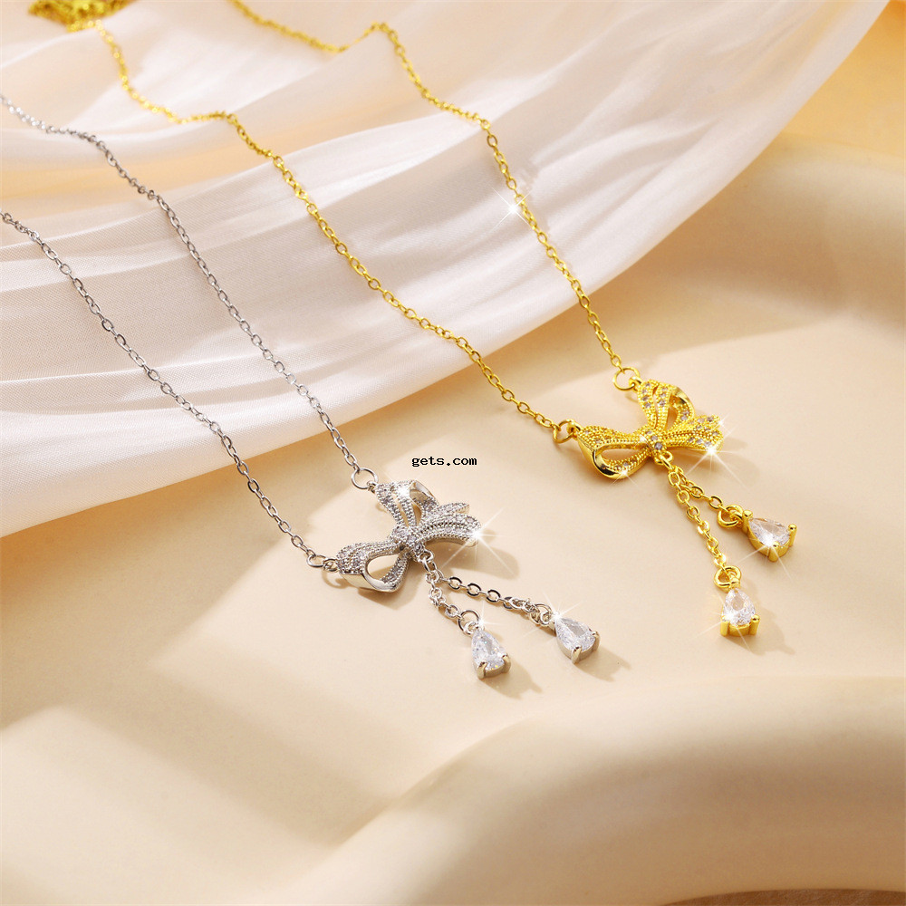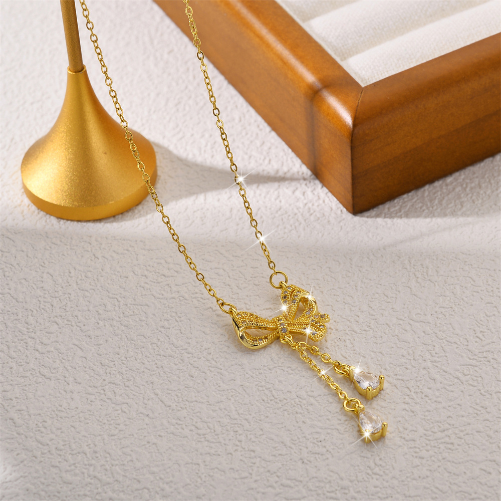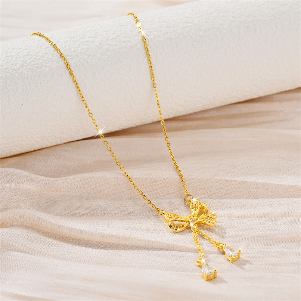 Titanium Steel Necklace, Bowknot, plated, fashion jewelry & for woman & with rhinestone, more colors for choice, Sold By PC
