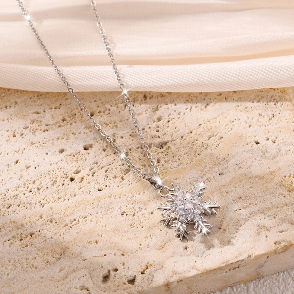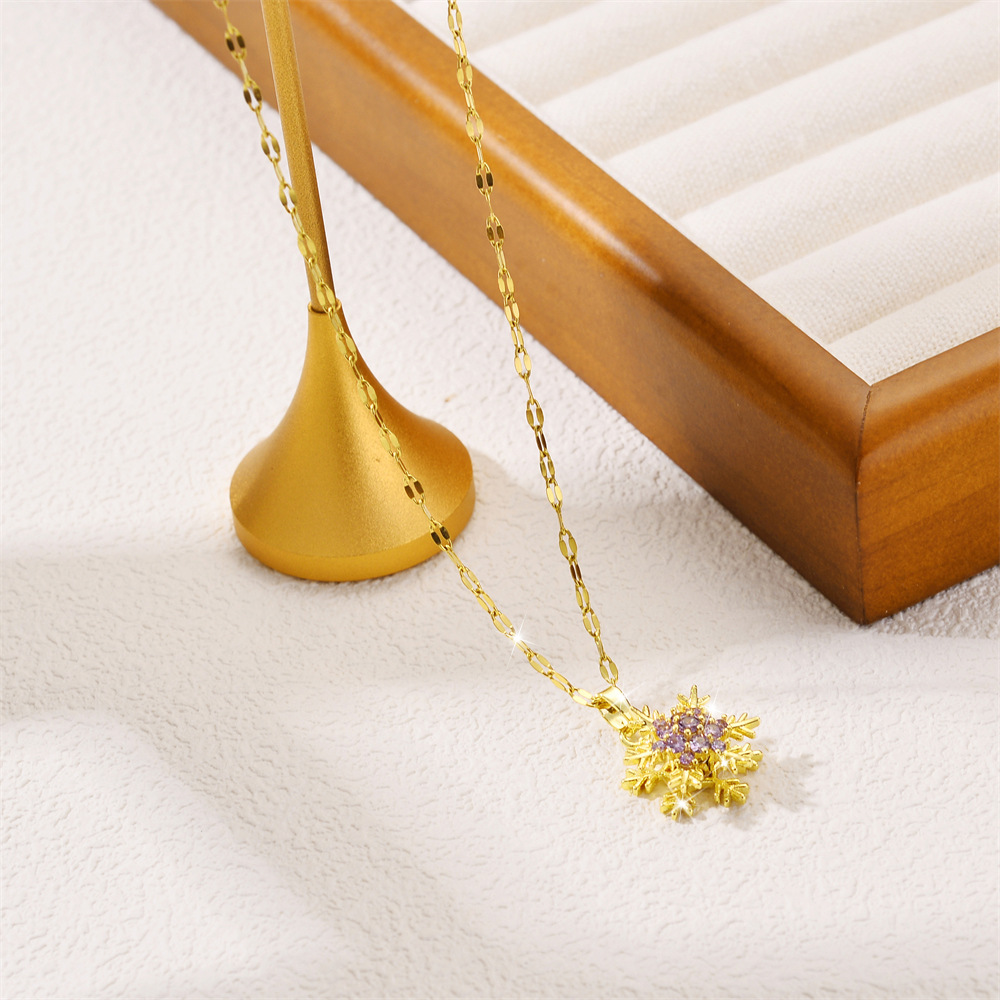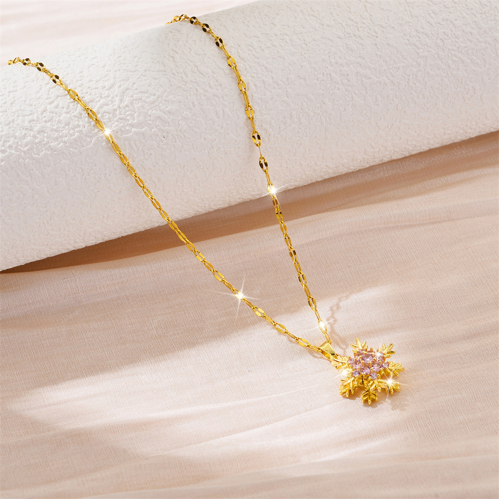 Titanium Steel Necklace, Snowflake, plated, rotatable & micro pave cubic zirconia & for woman, more colors for choice, Sold By PC