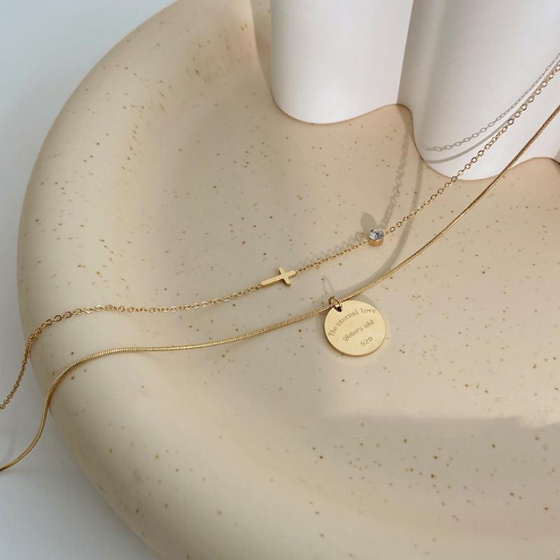 - Titanium Steel Necklace, Vacuum Ion Plating, for woman & enamel