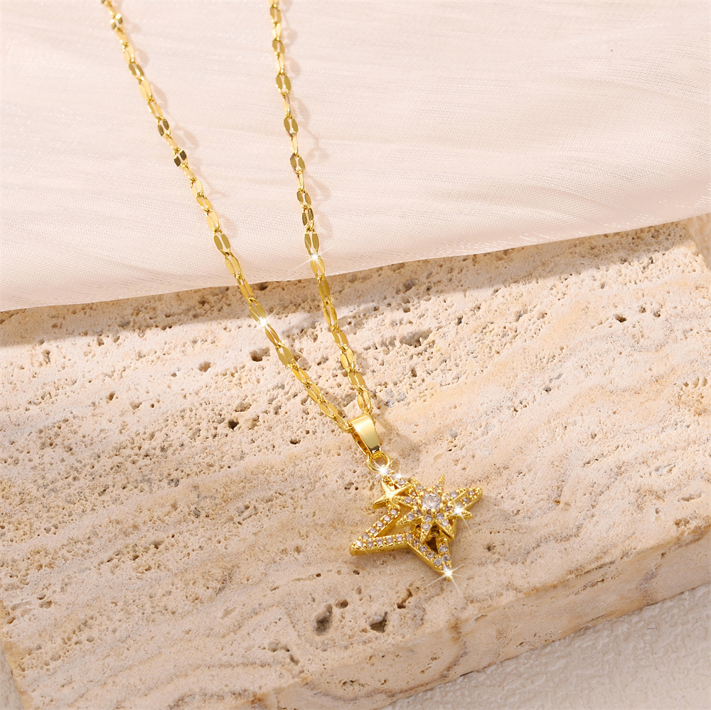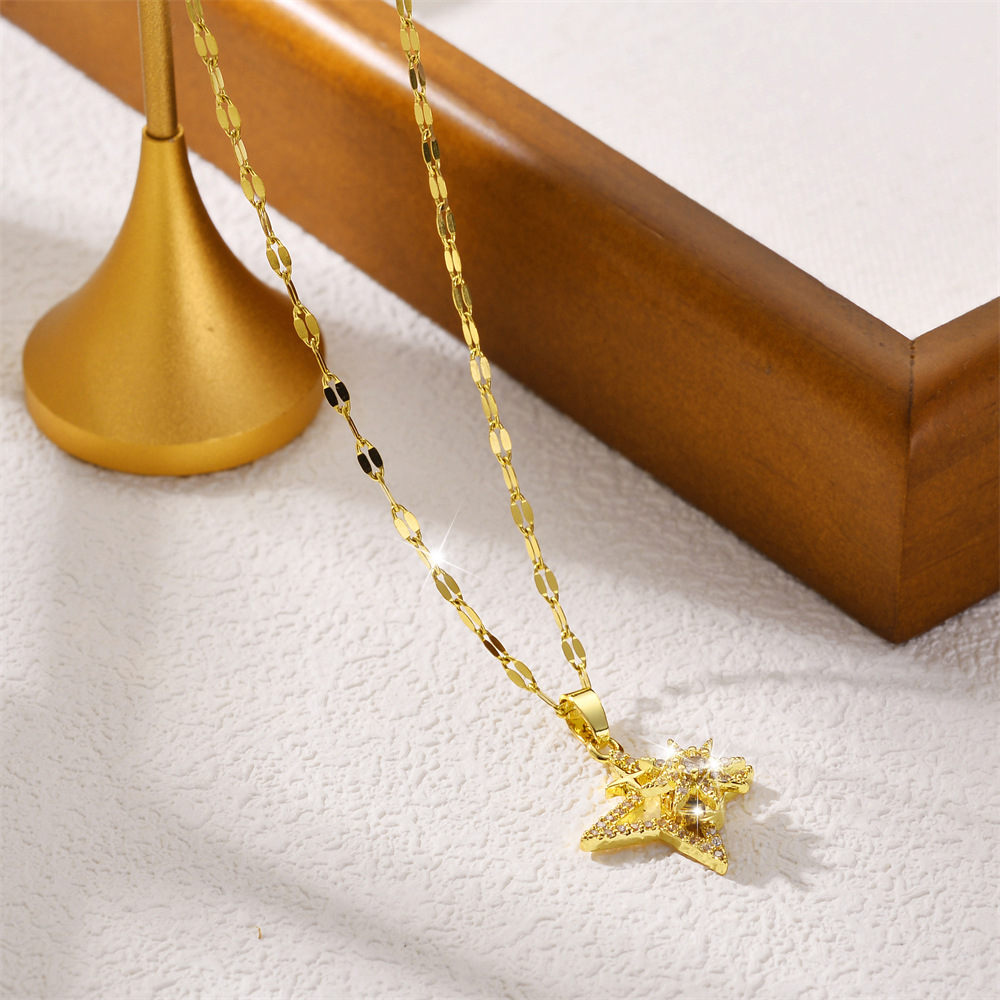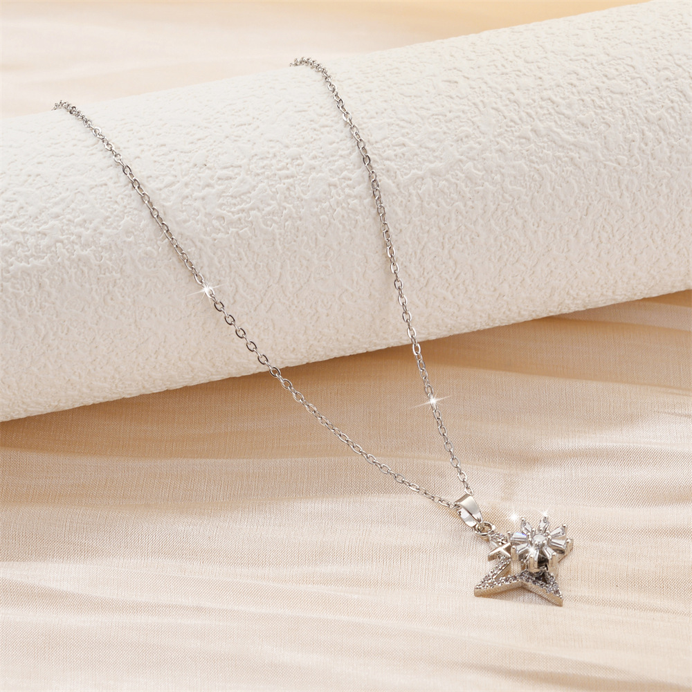 Titanium Steel Necklace, with Brass, plated, fashion jewelry & micro pave rhinestone & for woman, more colors for choice, Sold By PC