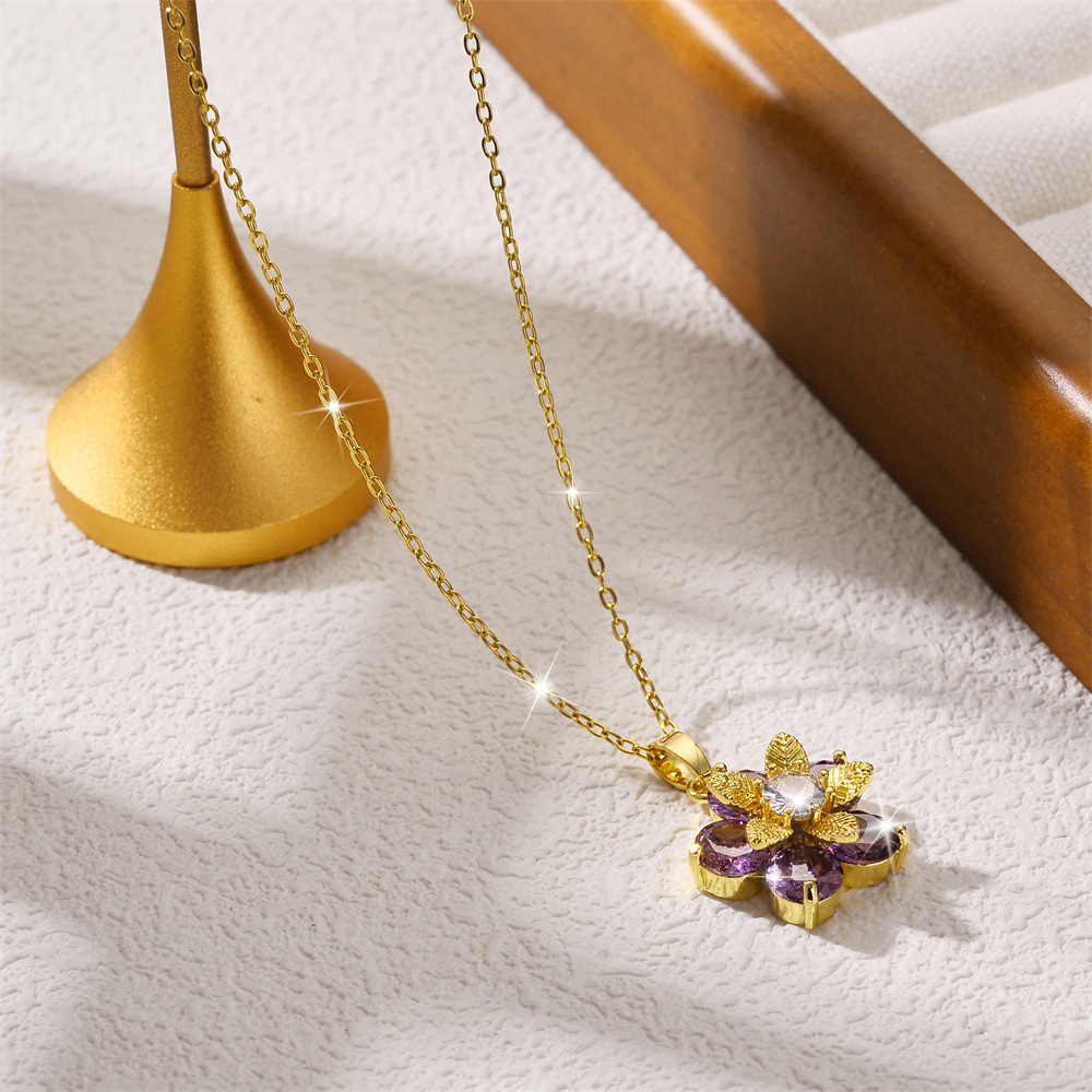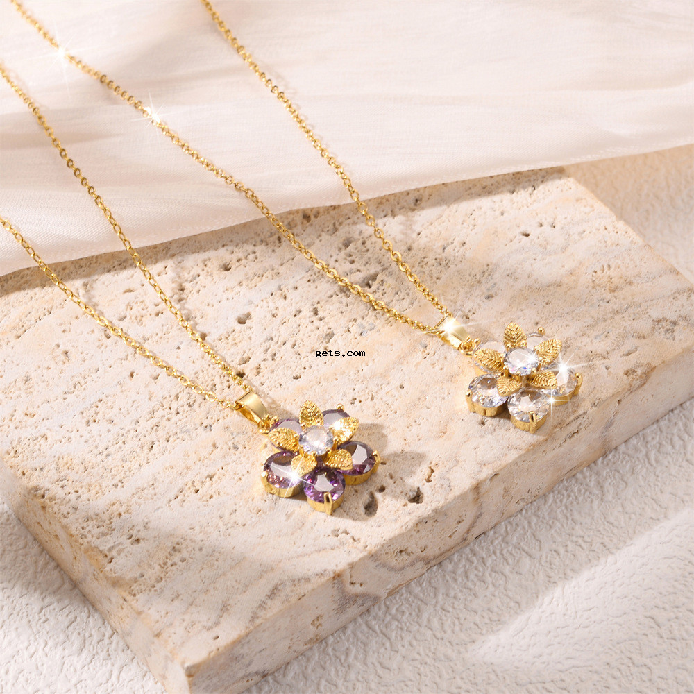 - Titanium Steel Necklace, Unisex & different size for choice & micro pave cubic zirconia, golden