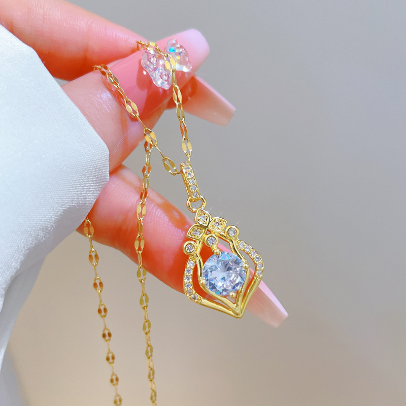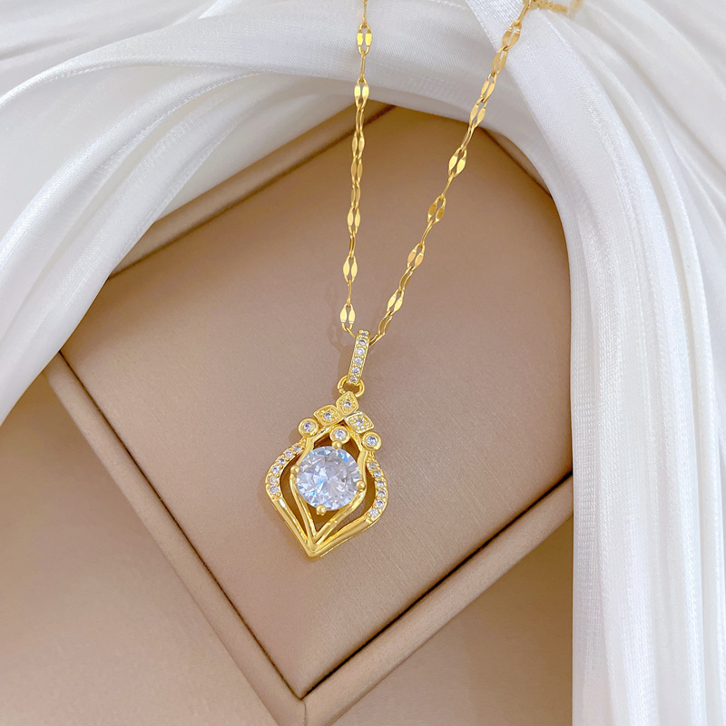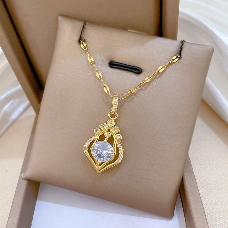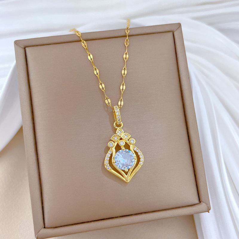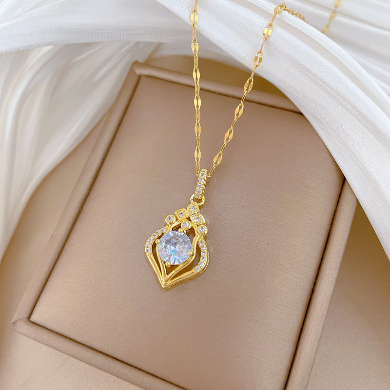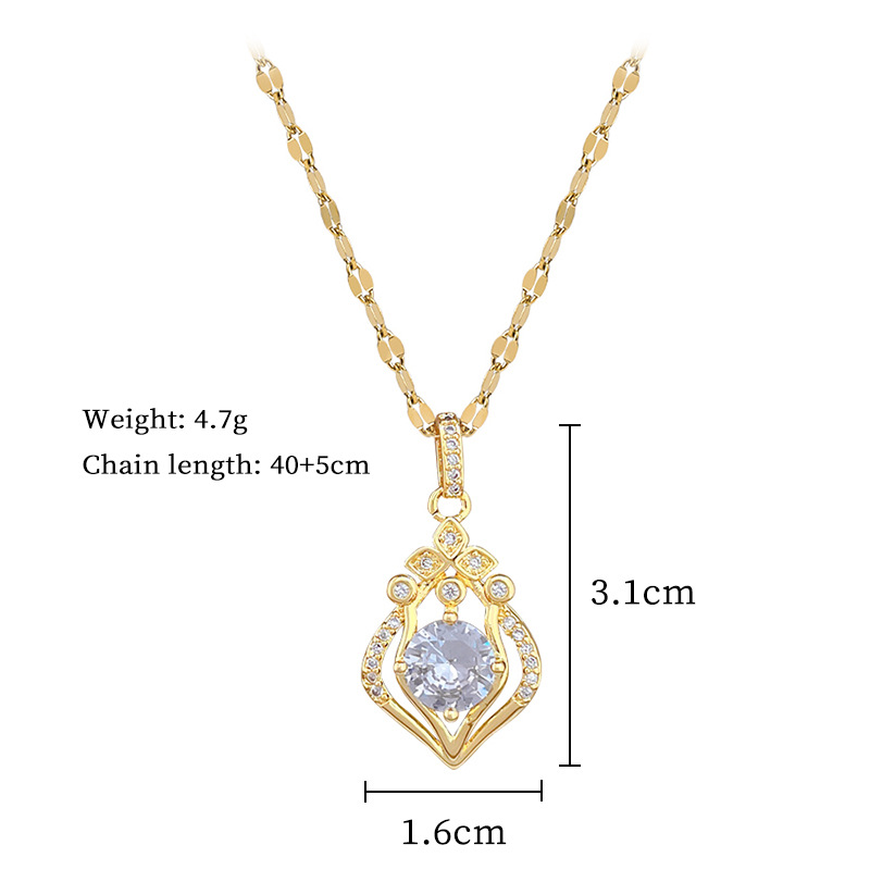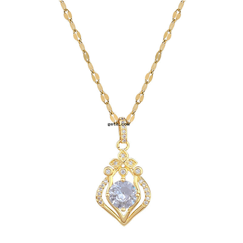 Titanium Steel Necklace, with Brass, Teardrop, fashion jewelry & micro pave cubic zirconia & for woman, golden, Sold By PC
