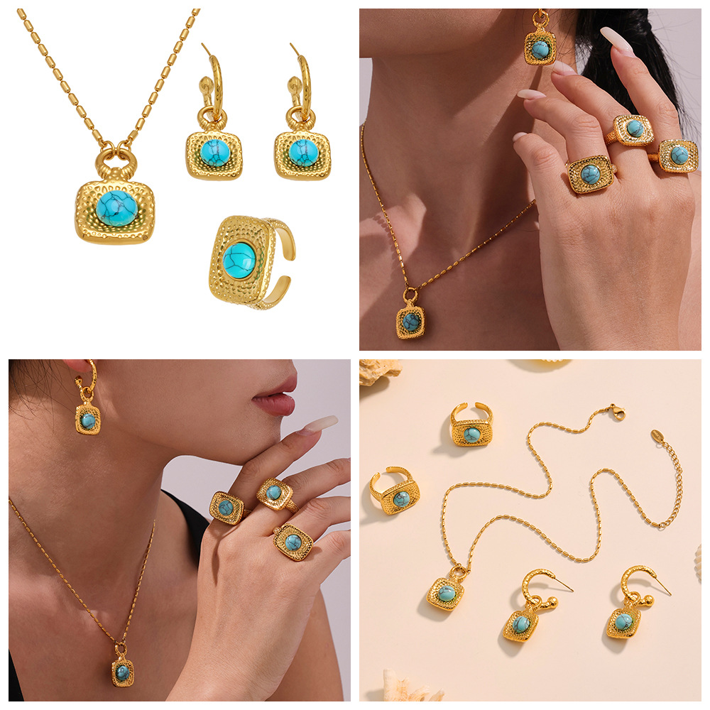 Turquoise Jewelry Sets, 304 Stainless Steel, with turquoise, plated, different materials for choice & different styles for choice & for woman, more colors for choice, Sold By PC
