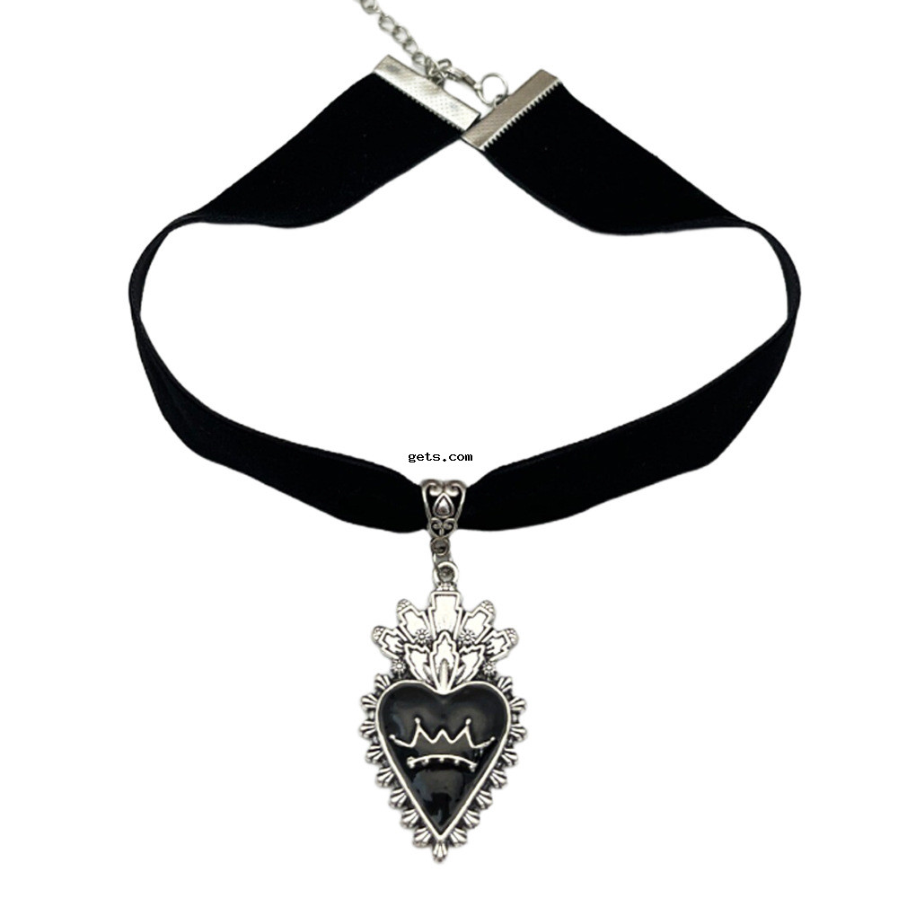 Velvet Choker, Tibetan Style, Heart, gold color plated, fashion jewelry & enamel, more colors for choice, Sold By PC