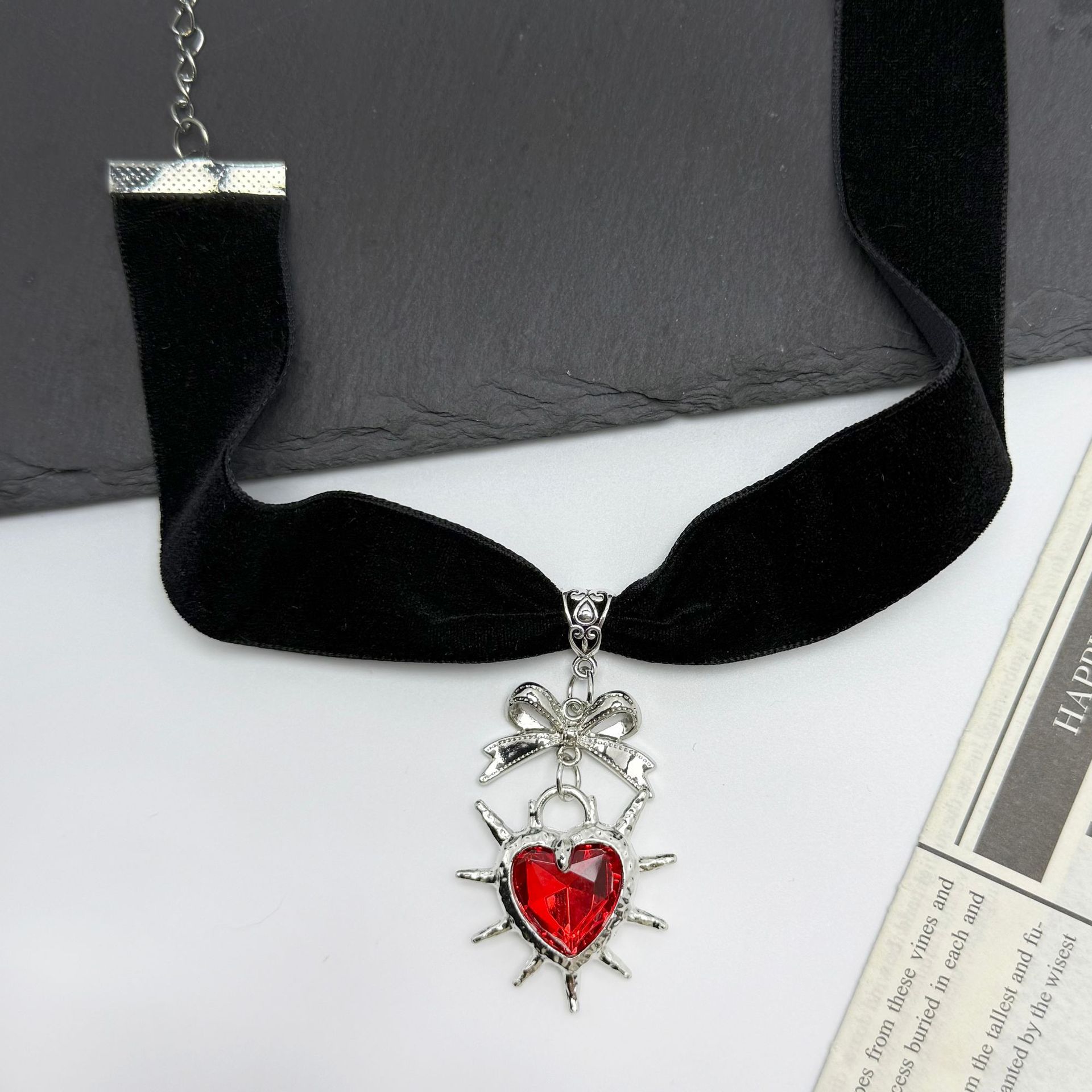 Velvet Choker, Tibetan Style, Heart, gold color plated, fashion jewelry & with rhinestone, more colors for choice, Sold By PC