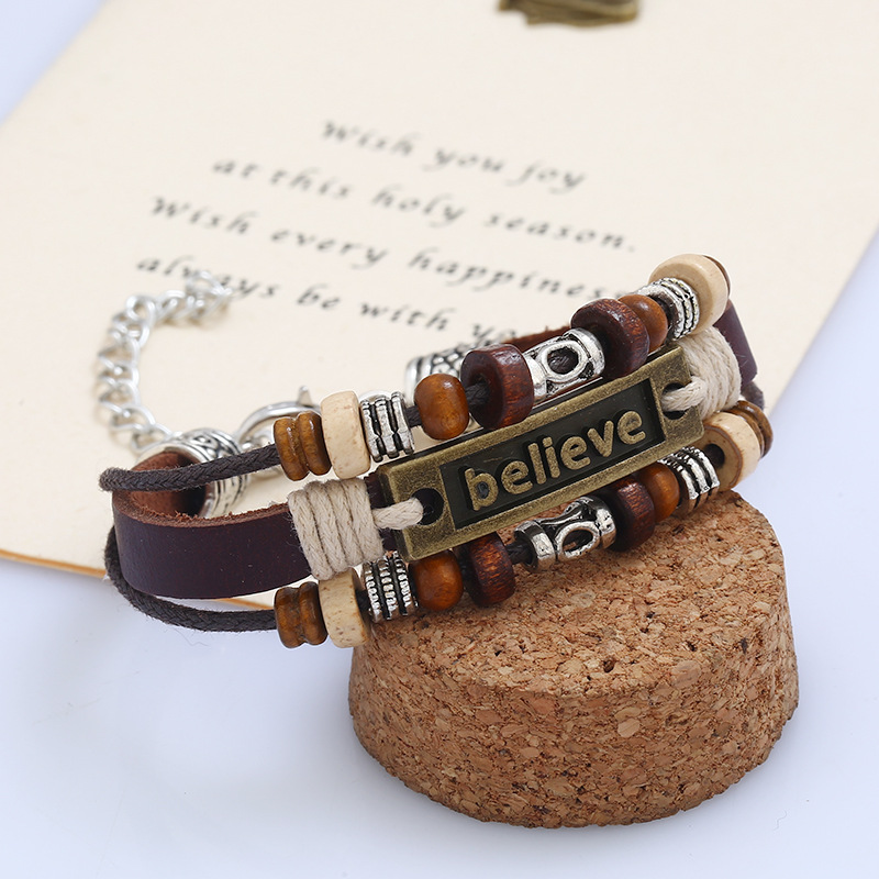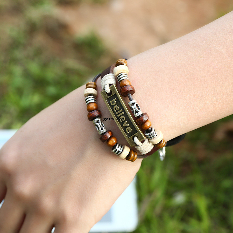 - Wrap Bracelet, PU Leather, with Tibetan Style