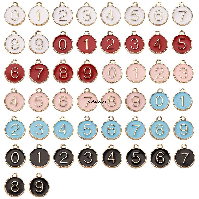 Tibetan Style Alphabet and number Pendants, Flat Round, gold color plated, DIY & different designs for choice & enamel, more colors for choice, 14x12mm, Sold By PC