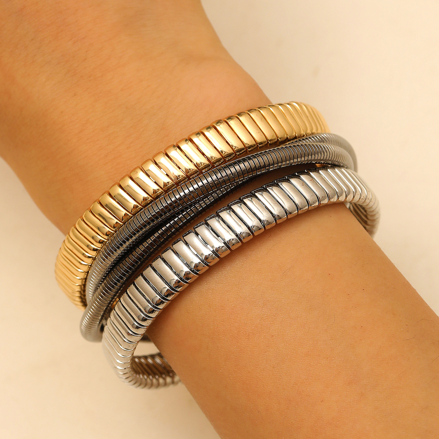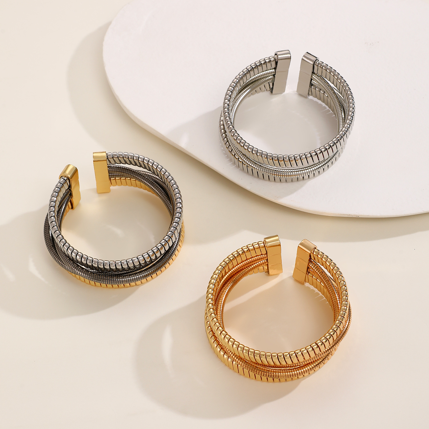 - Tibetan Style Bangle, with Tiger Tail Wire, plated