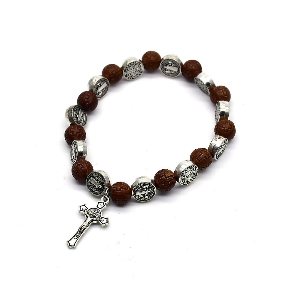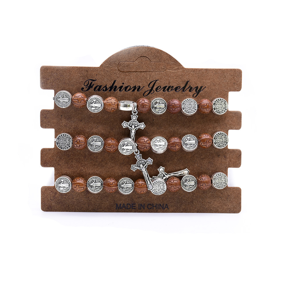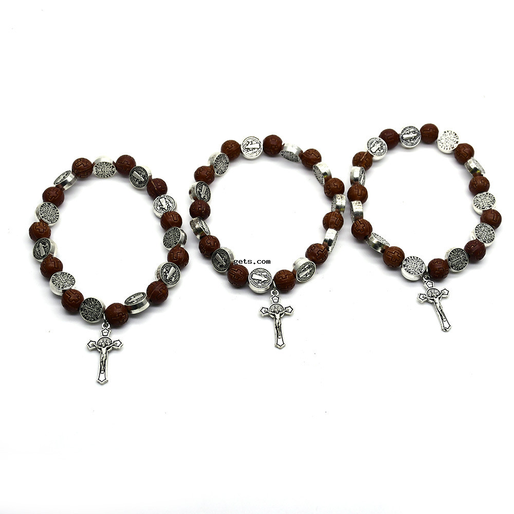 Tibetan Style Bracelet, with Plastic, Cross, silver color plated, fashion jewelry, mixed colors, 8mm, Length:18 cm, 3Strands/Set, Sold By Set