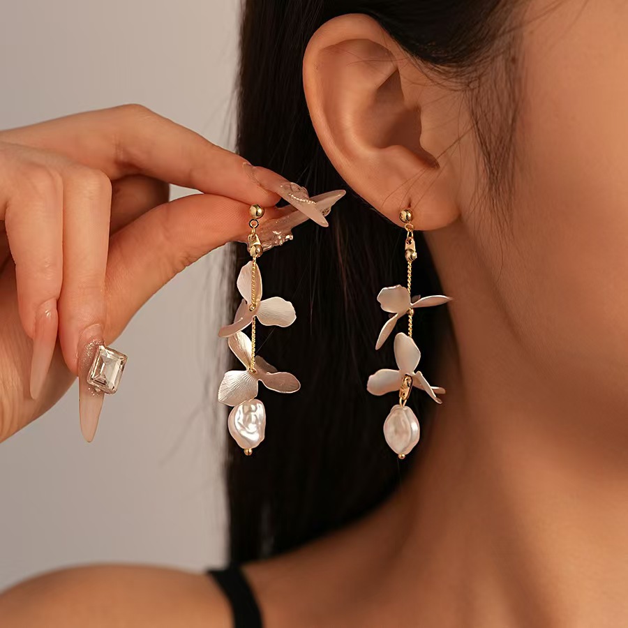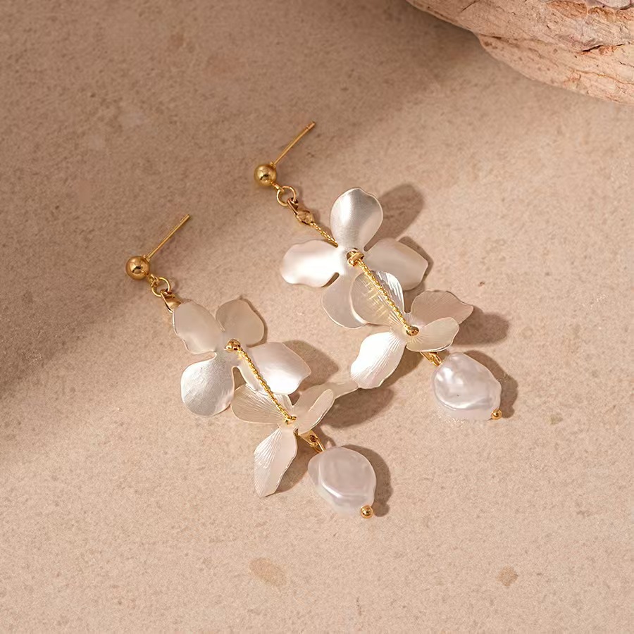 Tibetan Style Drop Earring, with Plastic Pearl, Flower, gold color plated, fashion jewelry & for woman, earring size 10-30mm, Sold By Pair
