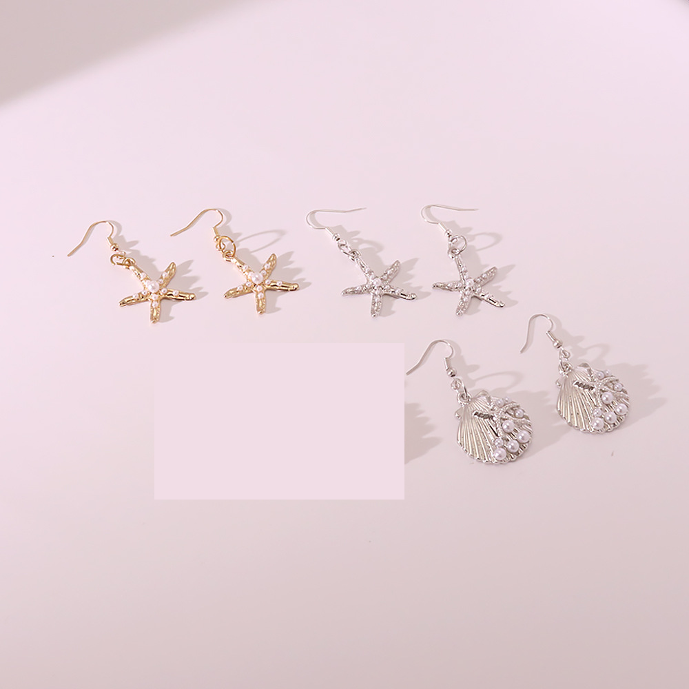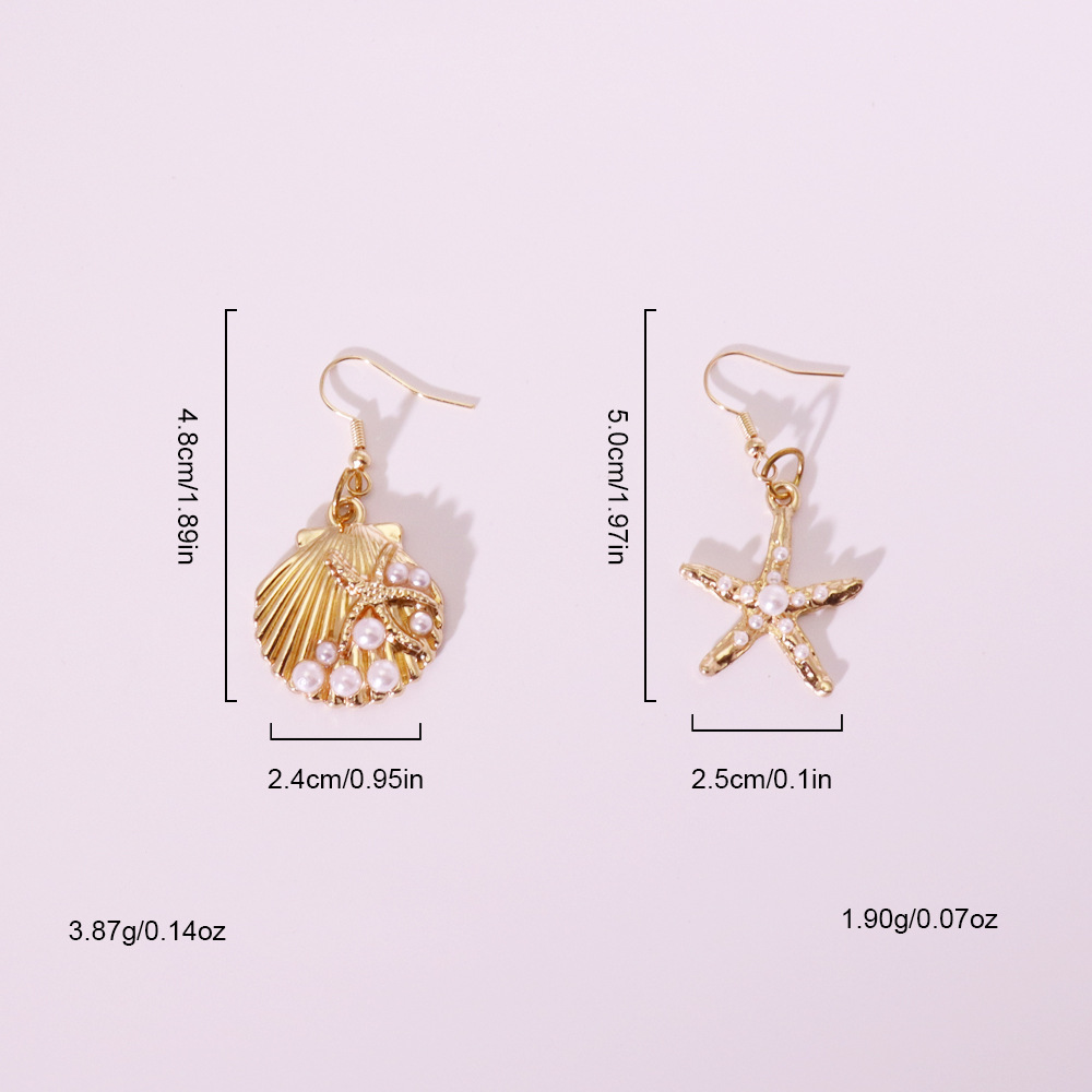Silver pearl earringsGold starfish earringsSilver starfish earringsSilver large shell earrings