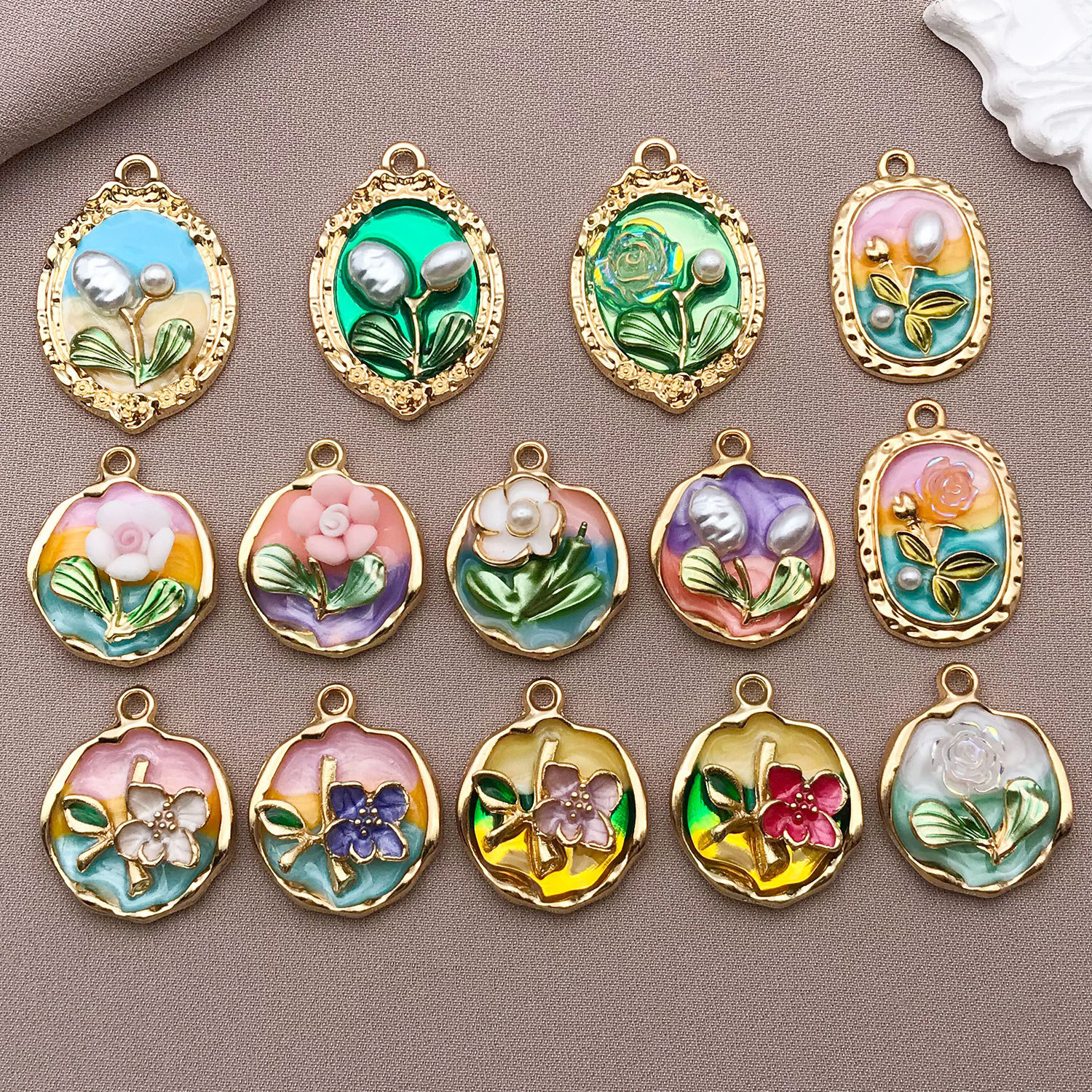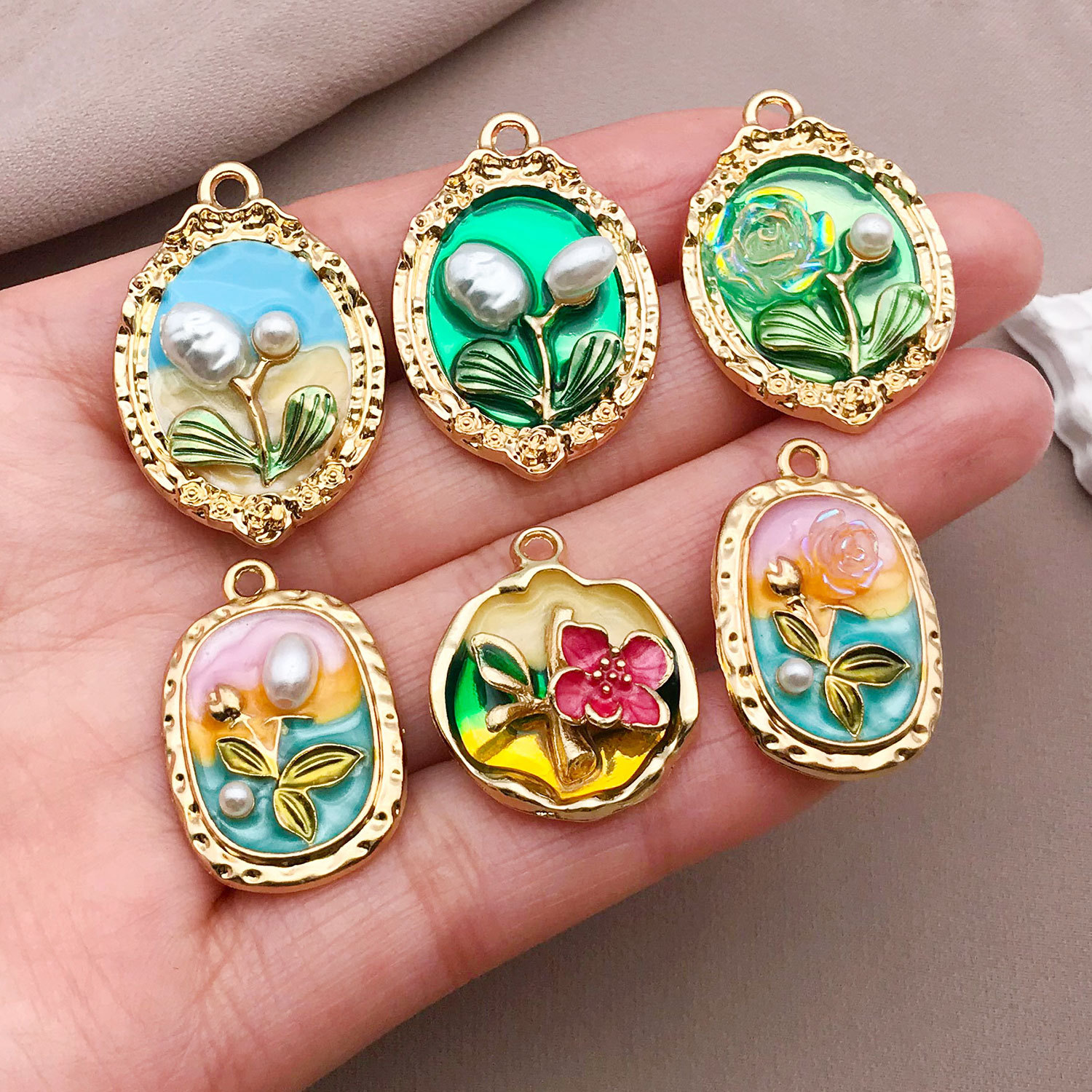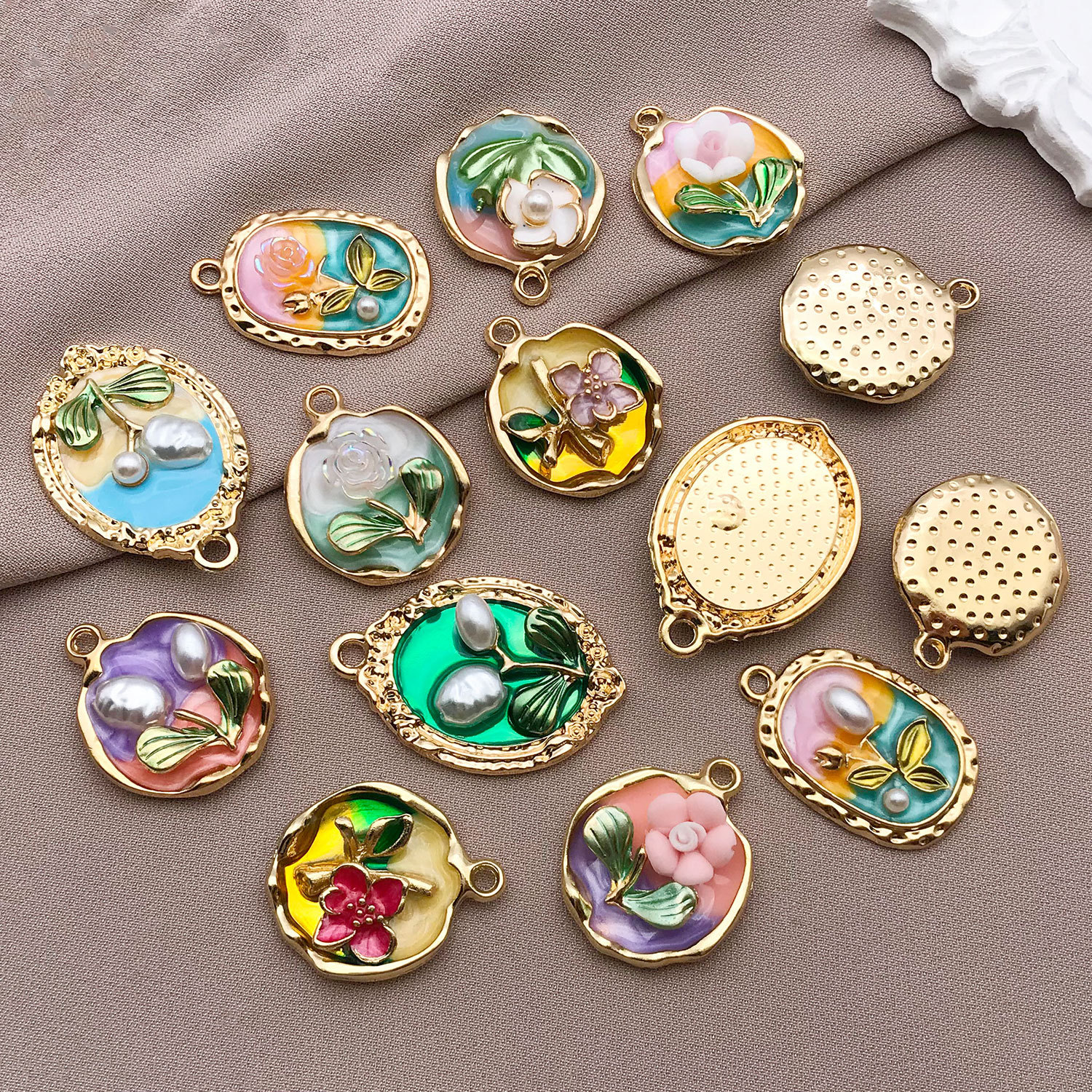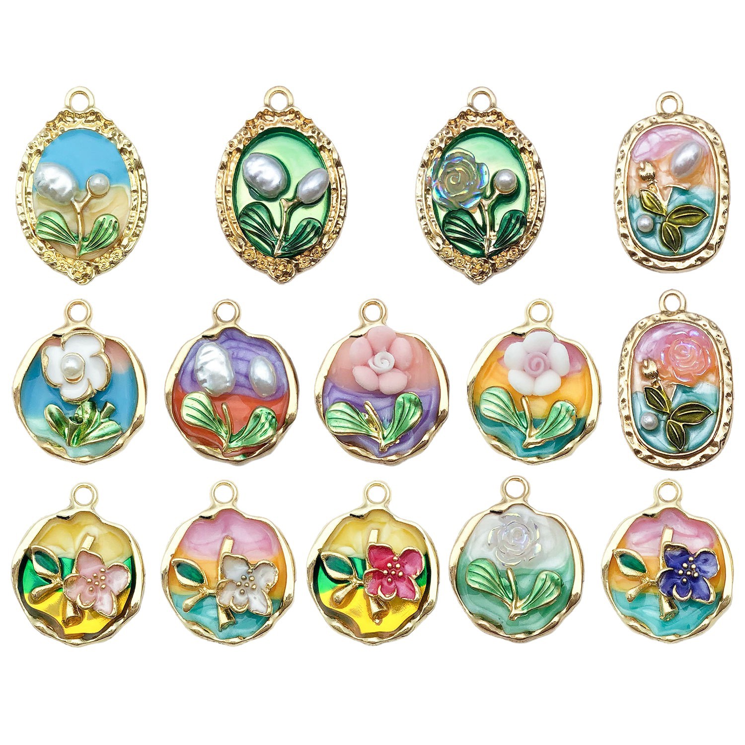- Tibetan Style Enamel Pendants, gold color plated, Unisex & different styles for choice