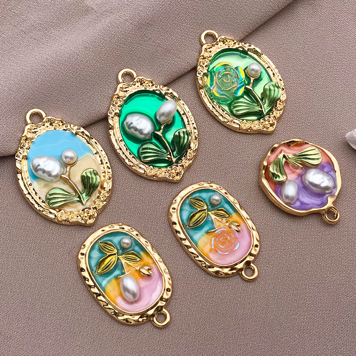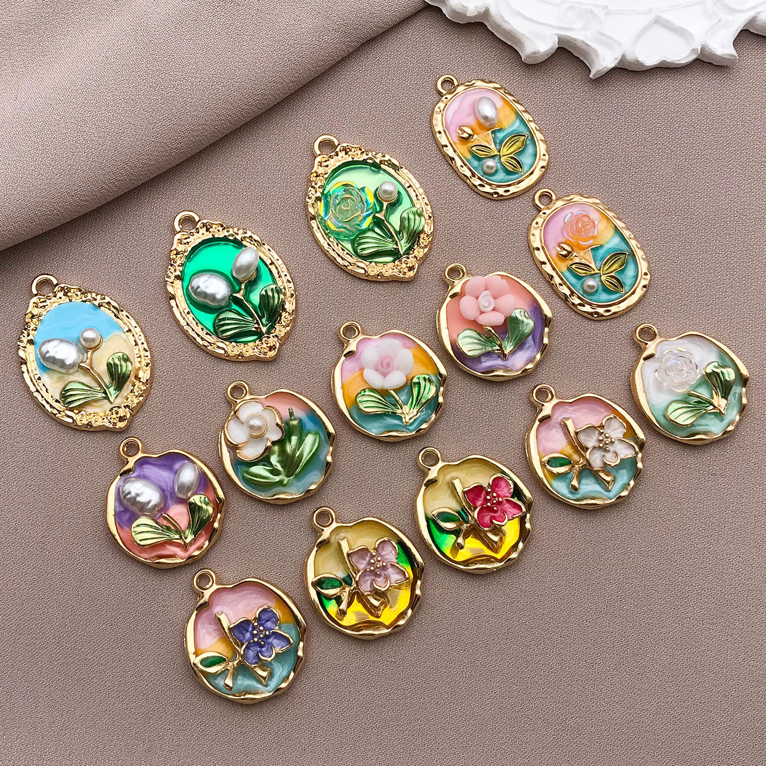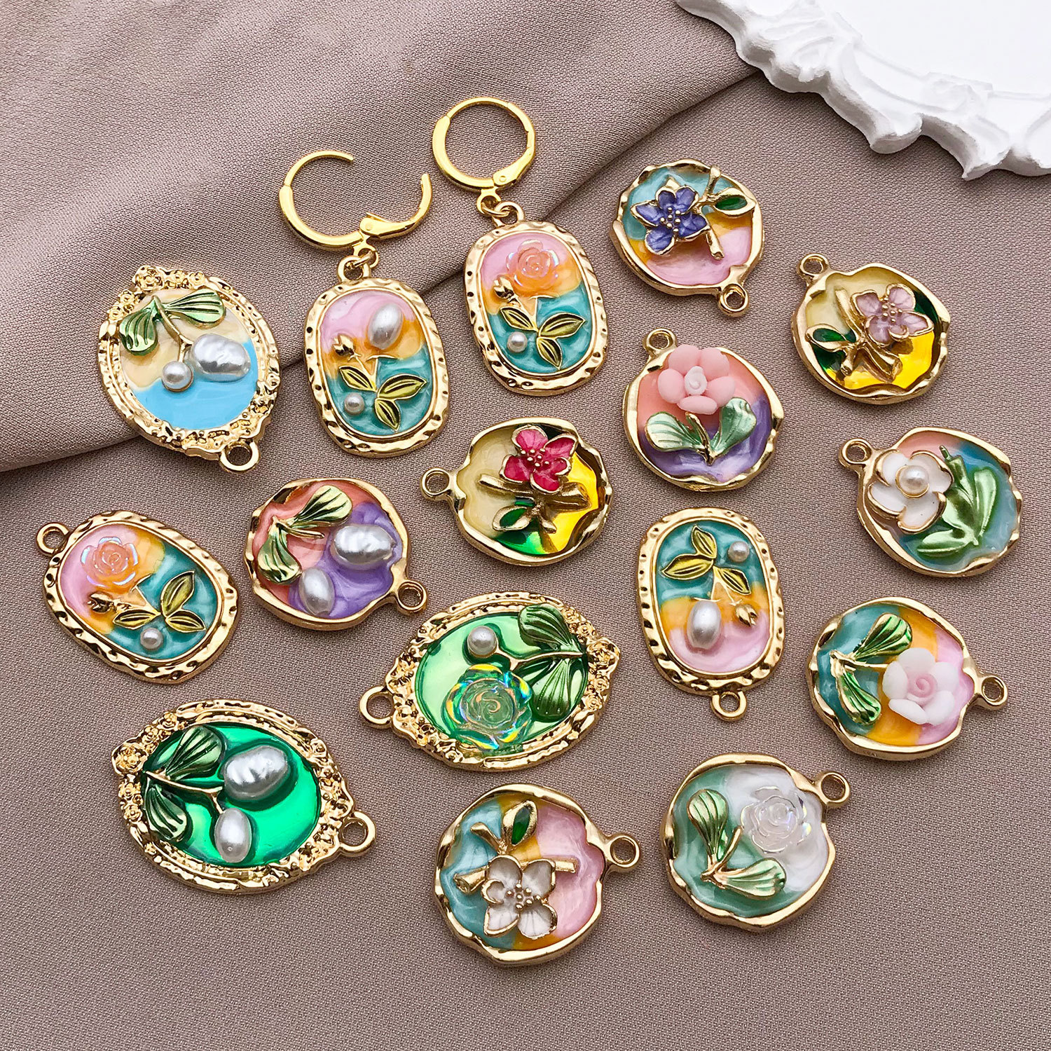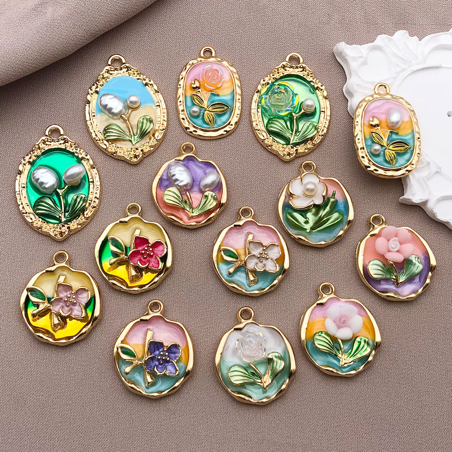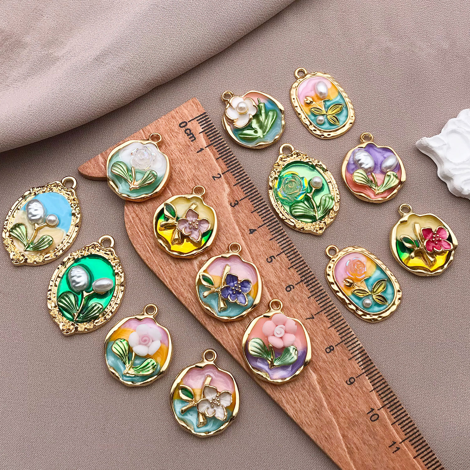 - Tibetan Style Enamel Pendants, gold color plated, Unisex & different styles for choice