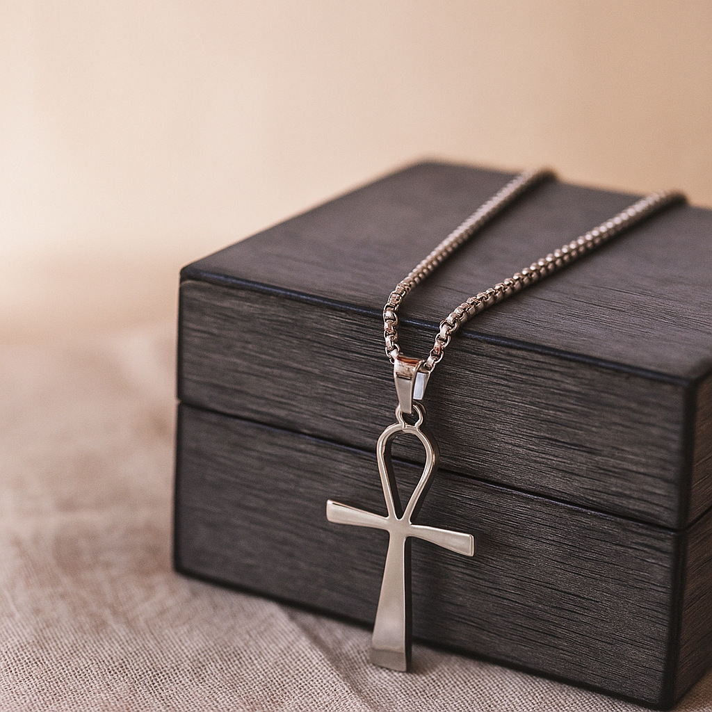 - Tibetan Style Sweater Chain Necklace, Cross, gold color plated