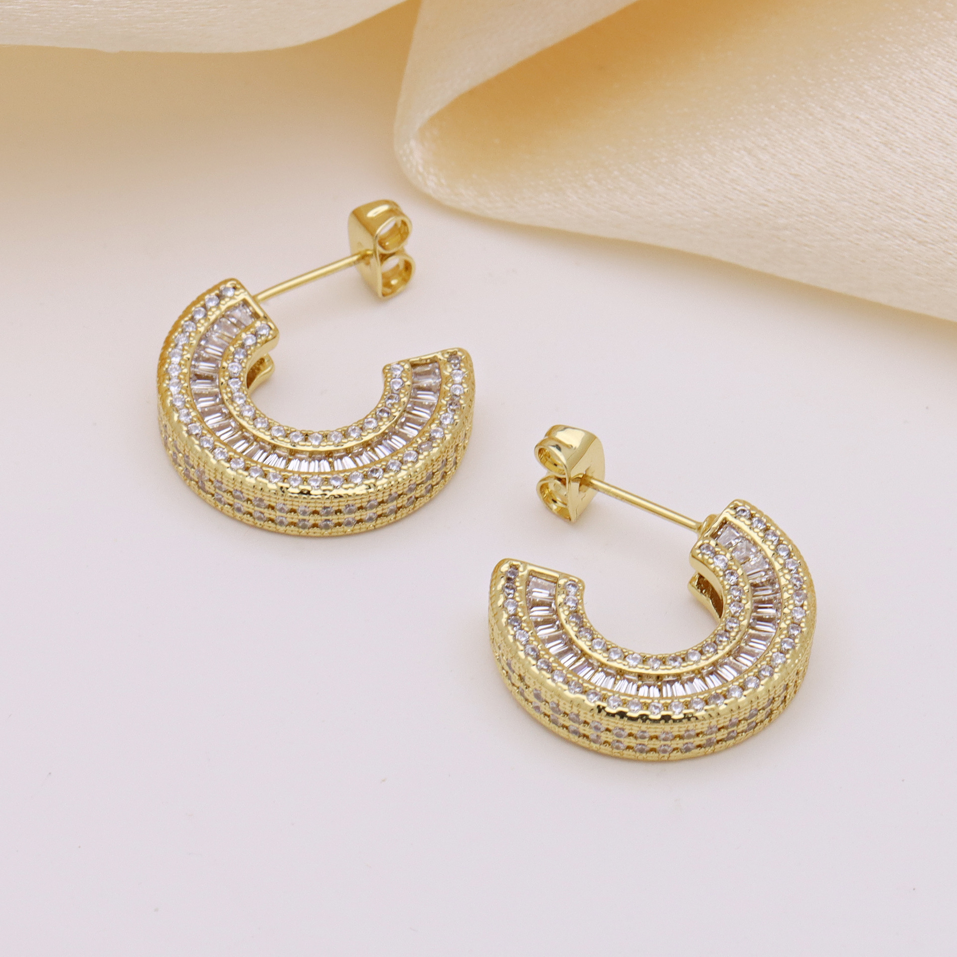- Цирконий Micro Pave латунь Серьги, Латунь, 18K позолоченный