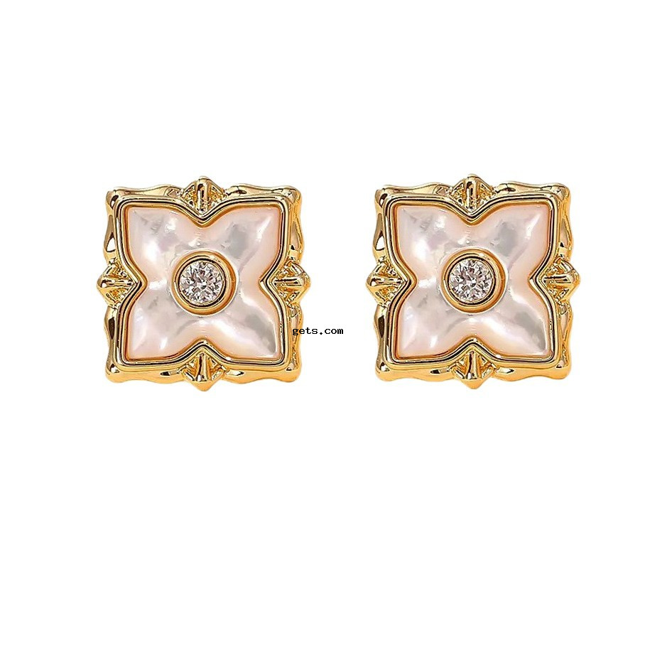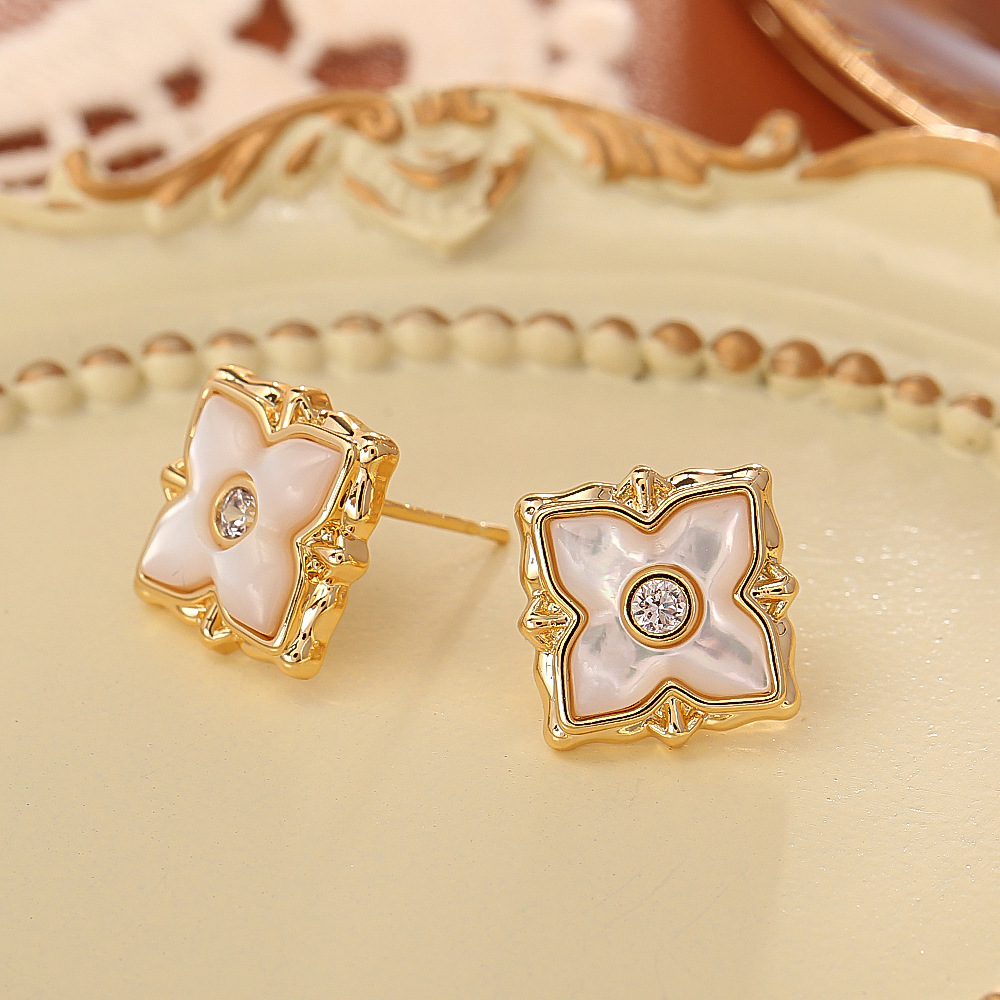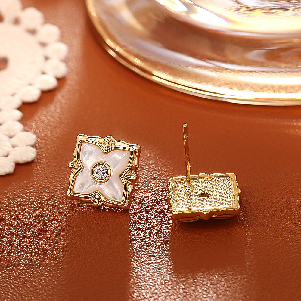 Цирконий Micro Pave латунь Серьги, Латунь, Четырехлистный клевер, плакированный настоящим золотом, ювелирные изделия моды & инкрустированное микро кубического циркония & Женский, продается Пара