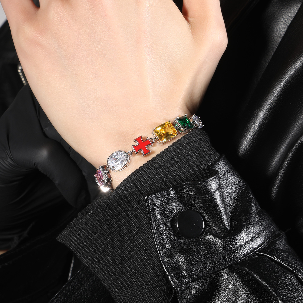 Латунь Ожерелье и Браслет, плакирован серебром, Мужская & разный размер для выбора & инкрустированное микро кубического циркония & эмаль, продается PC