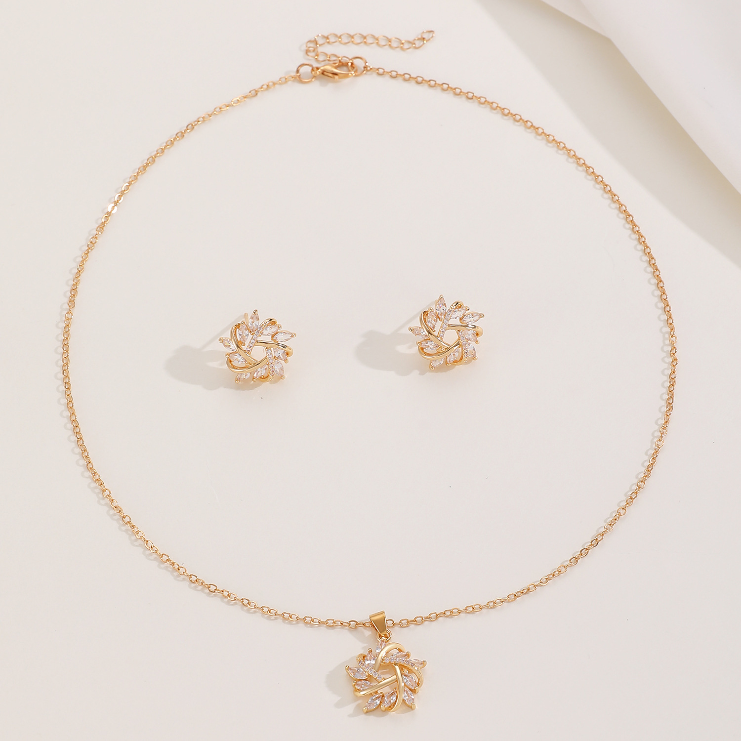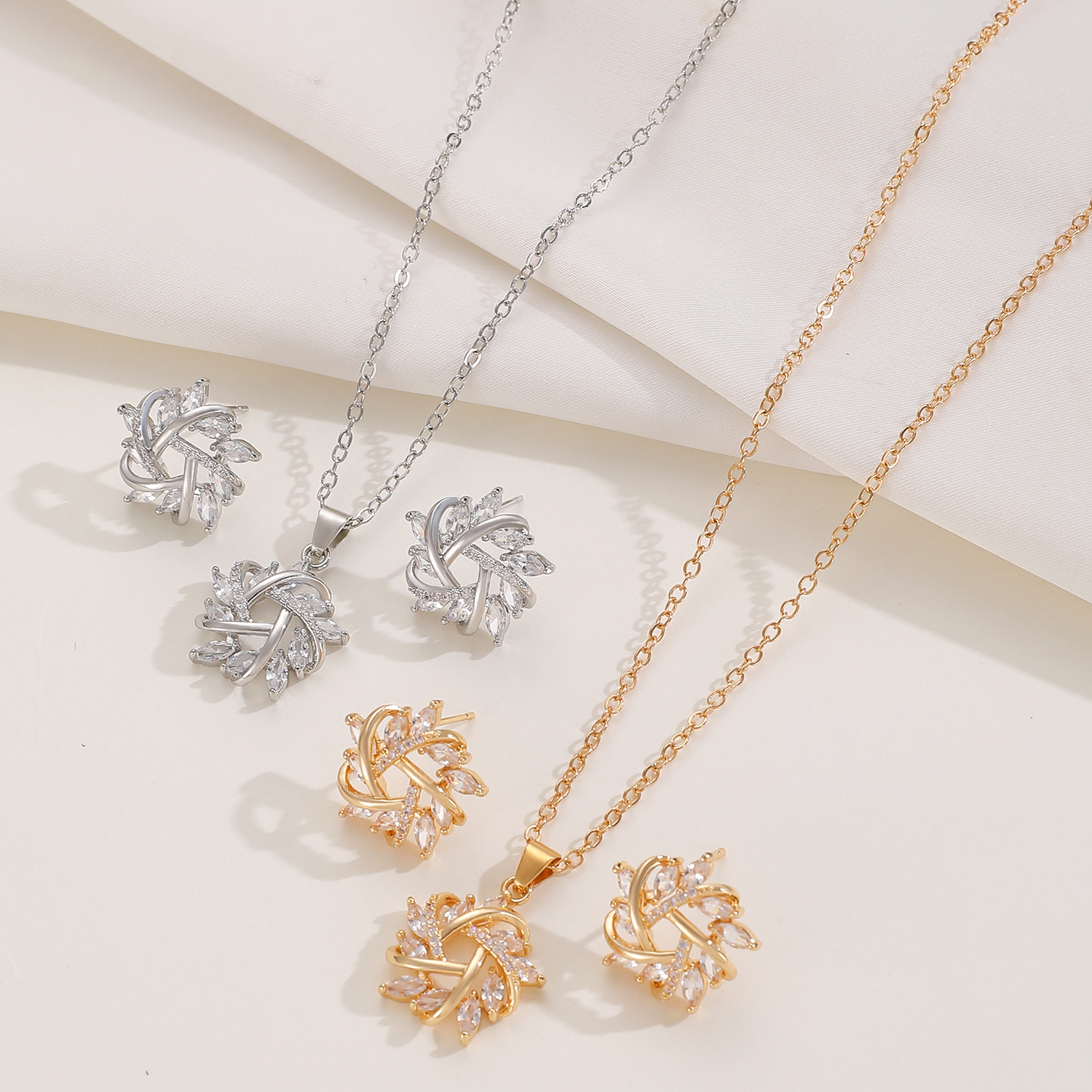 Кубический цирконий микро проложить латунь Ювелирные наборы, Стад серьги & ожерелье, Латунь, Другое покрытие, инкрустированное микро кубического циркония & Женский, золотой, продается указан