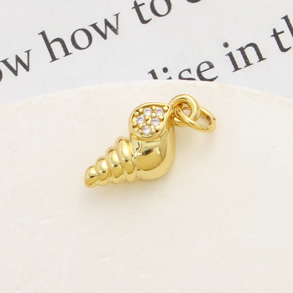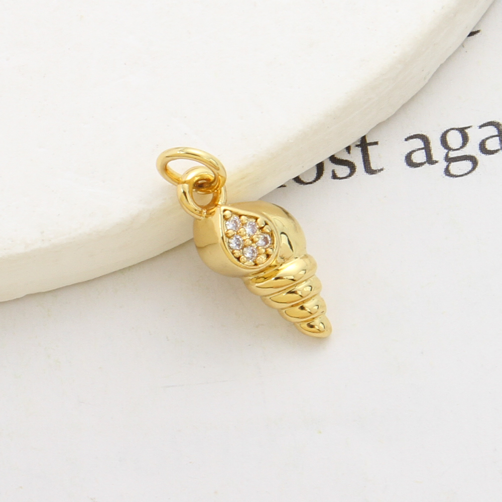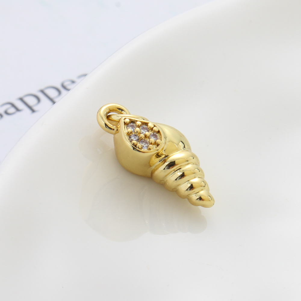 Цирконий Micro Pave латунь подвеска, Латунь, Ракушка, Другое покрытие, DIY & инкрустированное микро кубического циркония, Золотой, не содержит никель, свинец, 15.40x6.50x4.80mm, продается PC