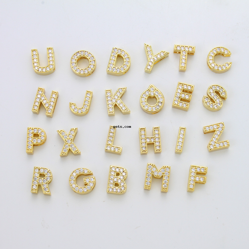 Цирконий Micro Pave латунь подвеска, Латунь, Алфавитное письмо, Другое покрытие, DIY & инкрустированное микро кубического циркония, Золотой, не содержит никель, свинец, 13.70x11.60x4.70mm, продается PC