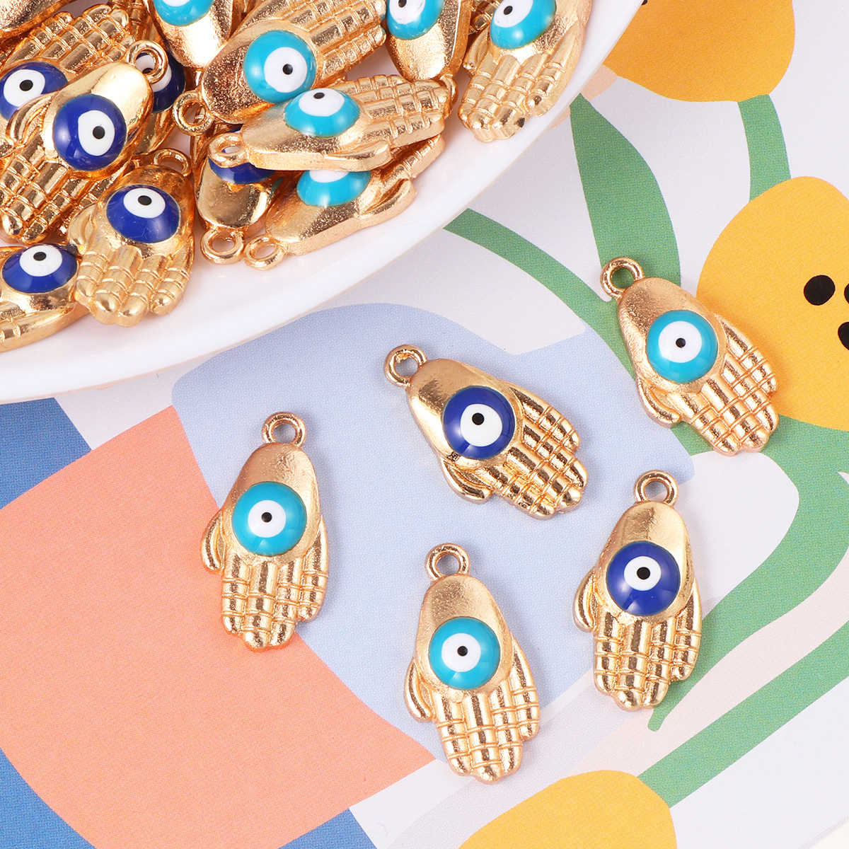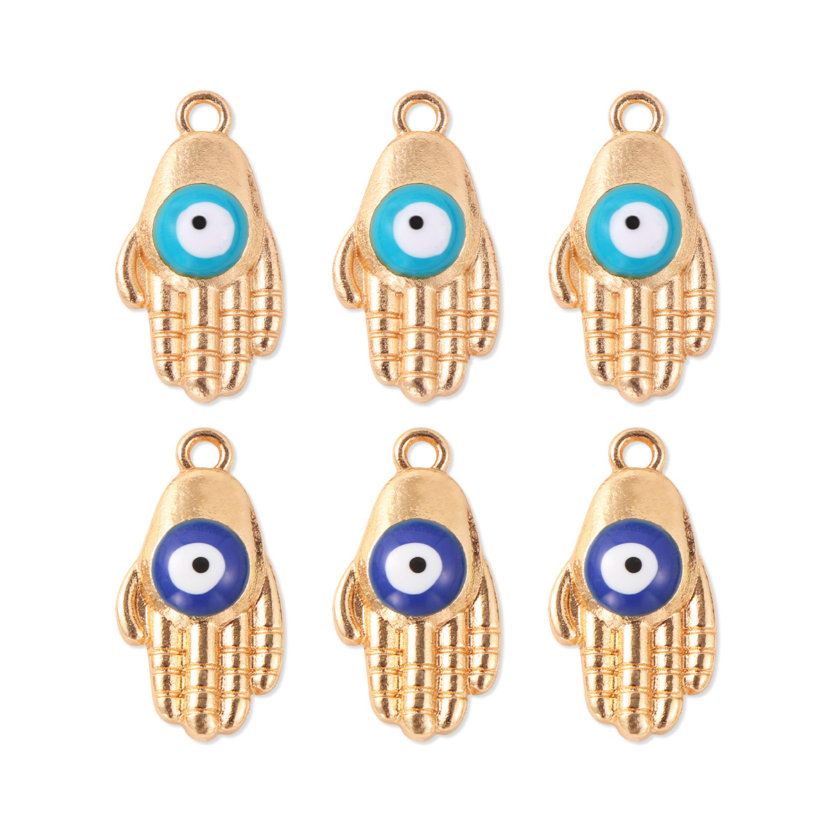Сглаза Подвески, цинковый сплав, с канифоль, Рука, плакирован золотом, DIY, Много цветов для выбора, 100ПК/сумка, продается сумка