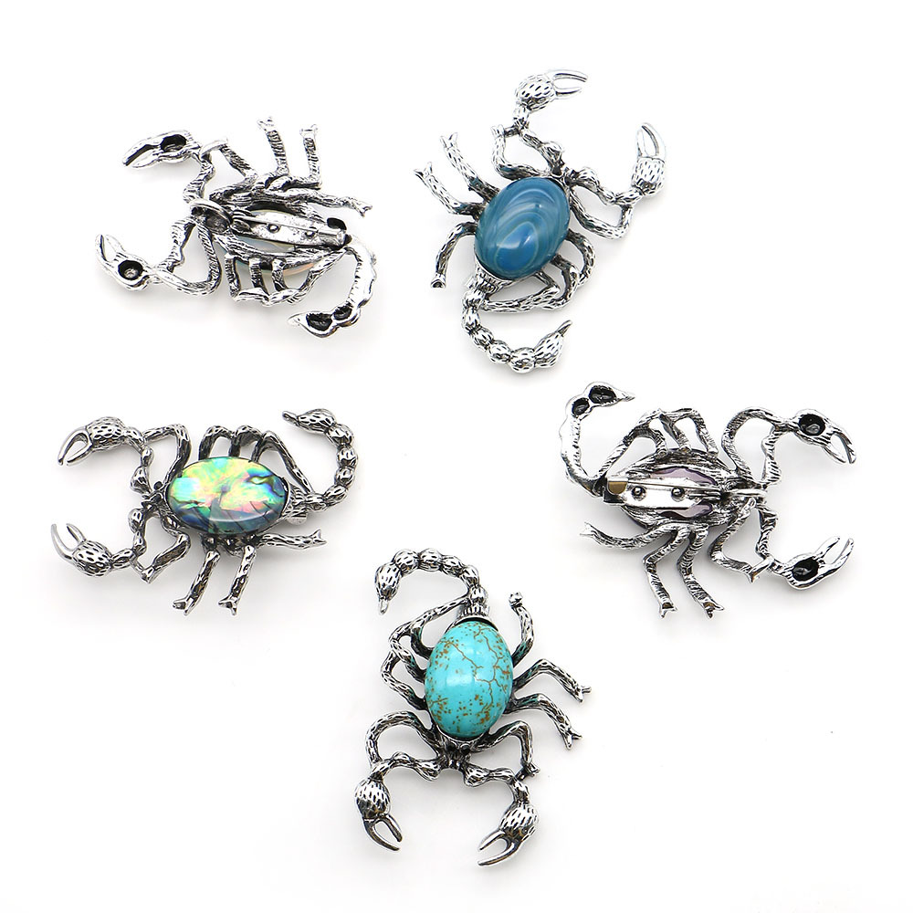 Модная ювелирная брошь, Полудрагоценный камень, с цинковый сплав, Скорпион, Другое покрытие, различные материалы для выбора & Мужская, 55x40mm, продается PC