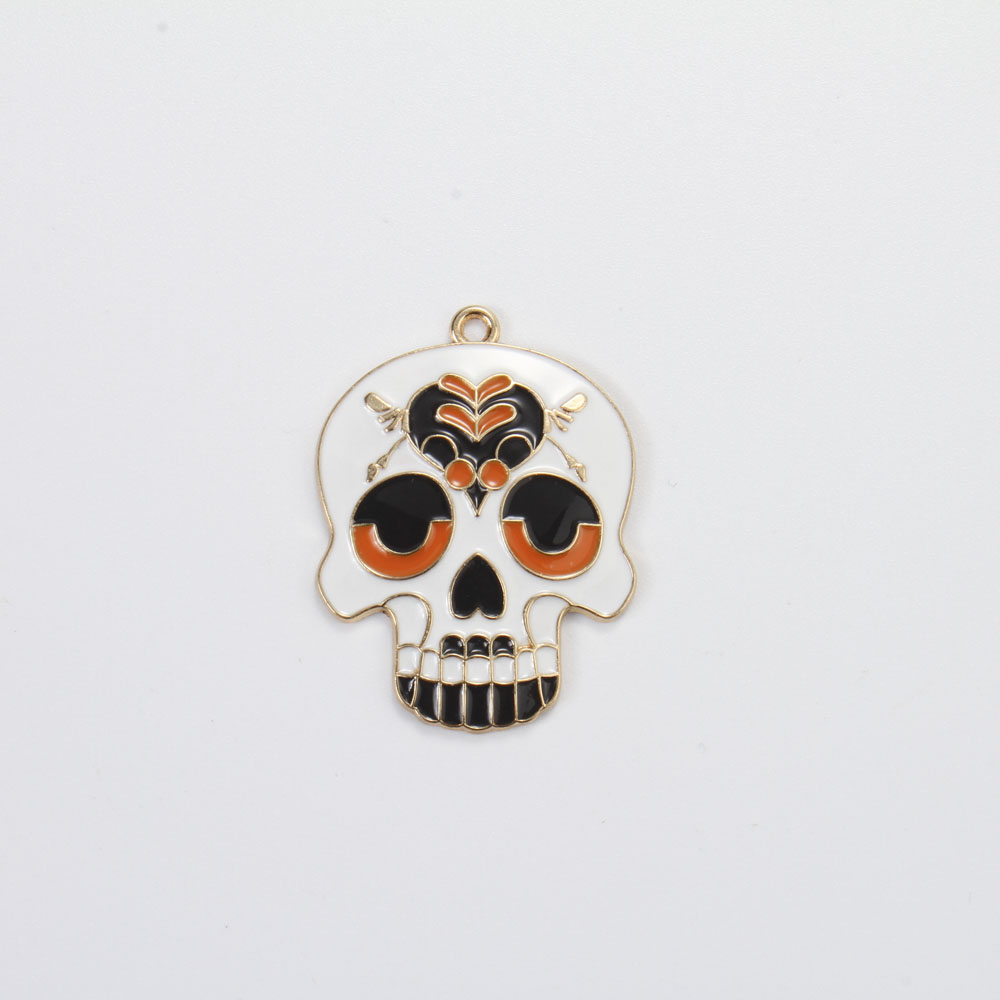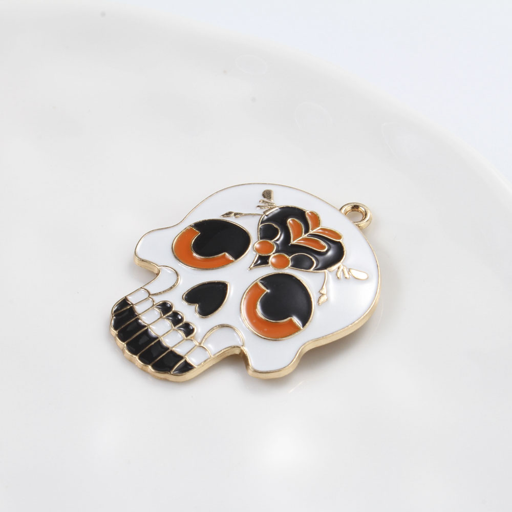 Мода Хэллоуин Кулон, цинковый сплав, Череп, плакирован золотом, Хэллоуин дизайн & DIY & эмаль, разноцветный, 38x28x2.50mm, продается PC