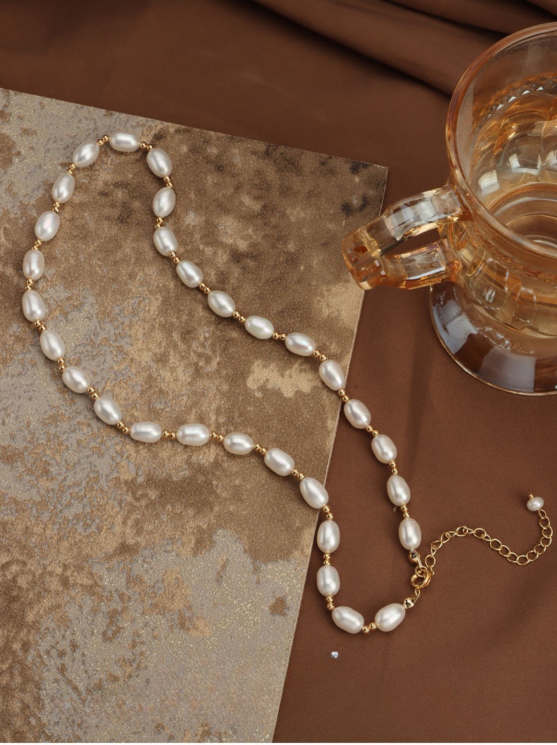 Ожерелье из пресноводных жемчуг на латунной цепочке, Пресноводные жемчуги, с Латунь, Рисообразная, Другое покрытие, ювелирные изделия моды, Много цветов для выбора, не содержит никель, свинец, продается PC