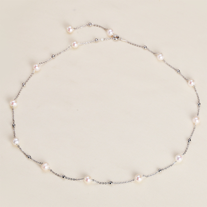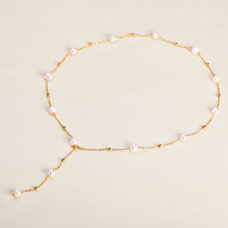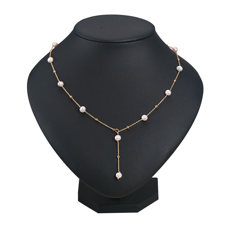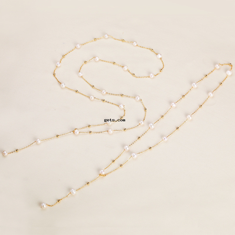 Ожерелье из пресноводных жемчуг на латунной цепочке, Пресноводные жемчуги, с Латунь, Слегка круглый, Другое покрытие, ювелирные изделия моды, Много цветов для выбора, не содержит никель, свинец, 5-6mm, продается PC