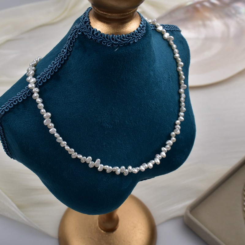 Ожерелье из пресноводных жемчуг на латунной цепочке, Пресноводные жемчуги, с Латунь, Стиль Барокко, Другое покрытие, ювелирные изделия моды, белый, 4-5mm, длина:38 см, продается PC