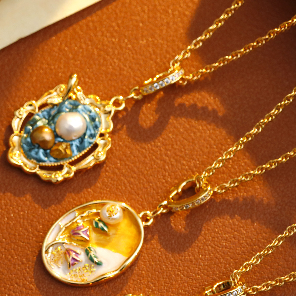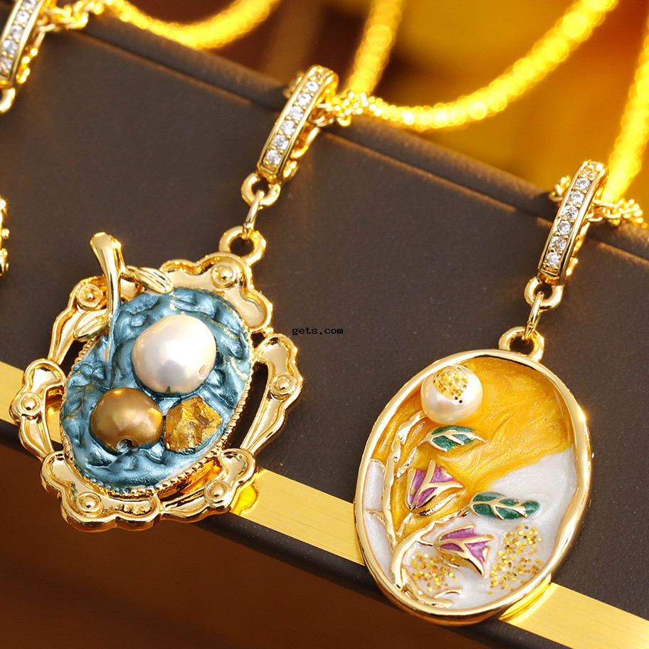 Ожерелье из пресноводных жемчуг на латунной цепочке, Латунь, с Пресноводные жемчуги, с 5.5cm наполнитель цепи, 18K позолоченный, разные стили для выбора & инкрустированное микро кубического циркония & Женский & эмаль, The pendant is 3.5cm long and 1.6cm wide, длина:46 см, продается PC