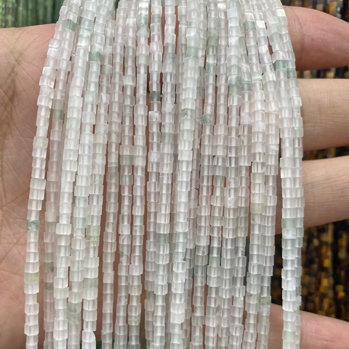 - Бусины из поделочных камней, Изумрудный, Квадратная форма