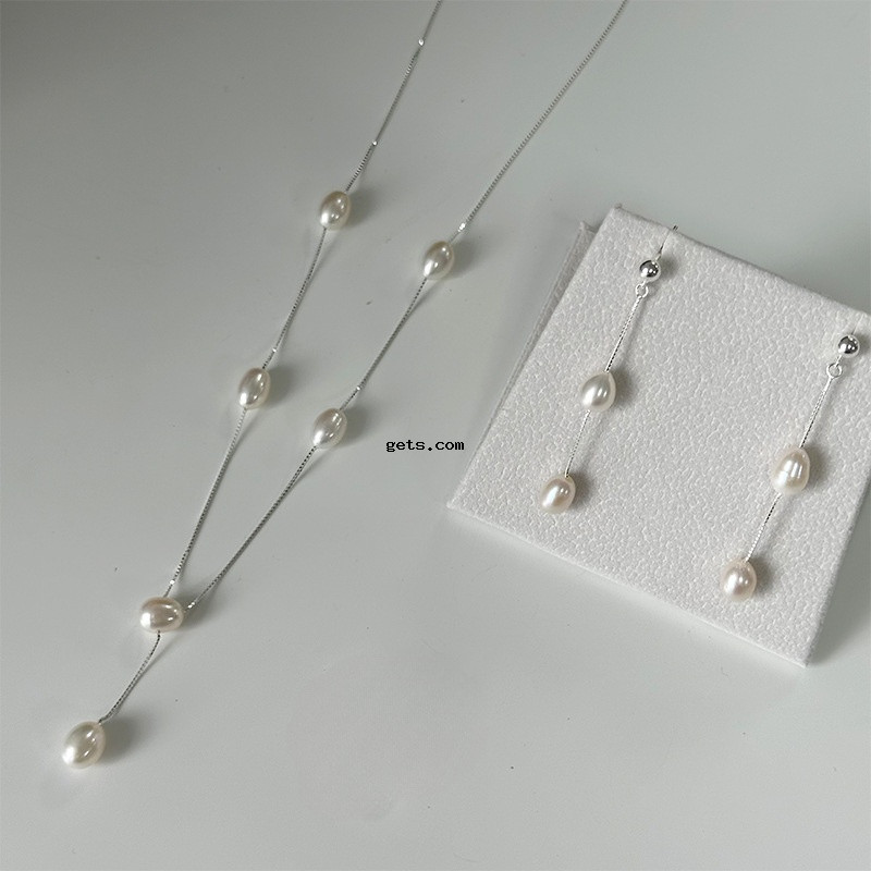 Комплекты украшений с жемчугом, серьги & ожерелье, Серебро 925 пробы, с Пресноводные жемчуги, плакирован серебром, ювелирные изделия моды, Много цветов для выбора, 10x10x10mm, продается PC