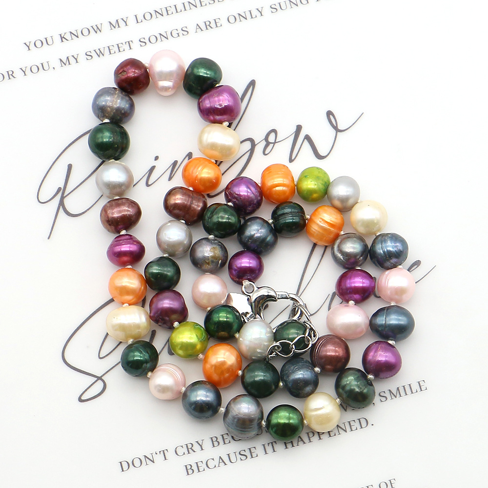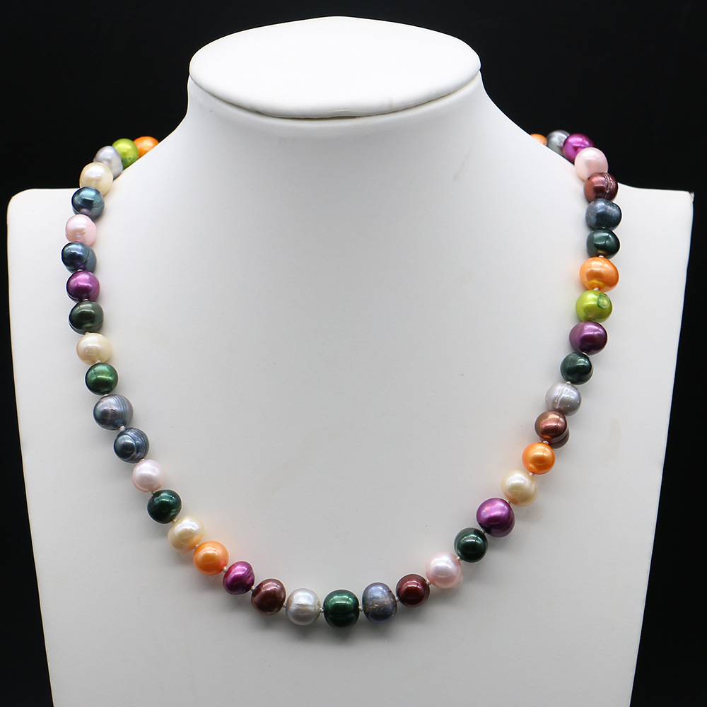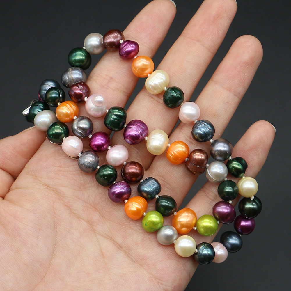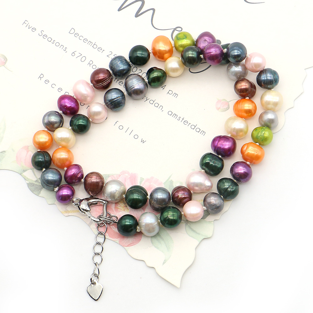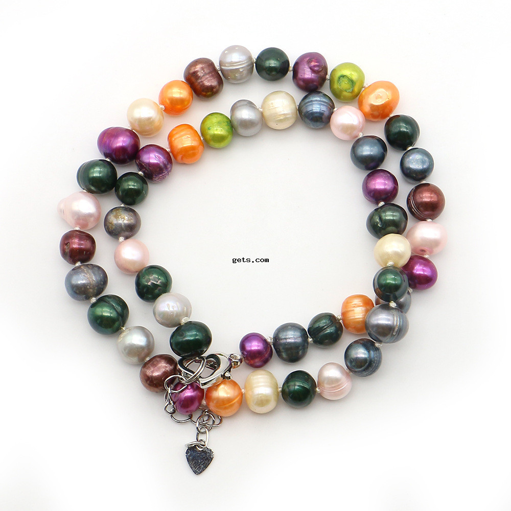 Природное пресноводное жемчужное ожерелье, Пресноводные жемчуги, с Нержавеющая сталь 304, Стиль Барокко, ювелирные изделия моды, разноцветный, 8-9mm, Продан через 41 см Strand
