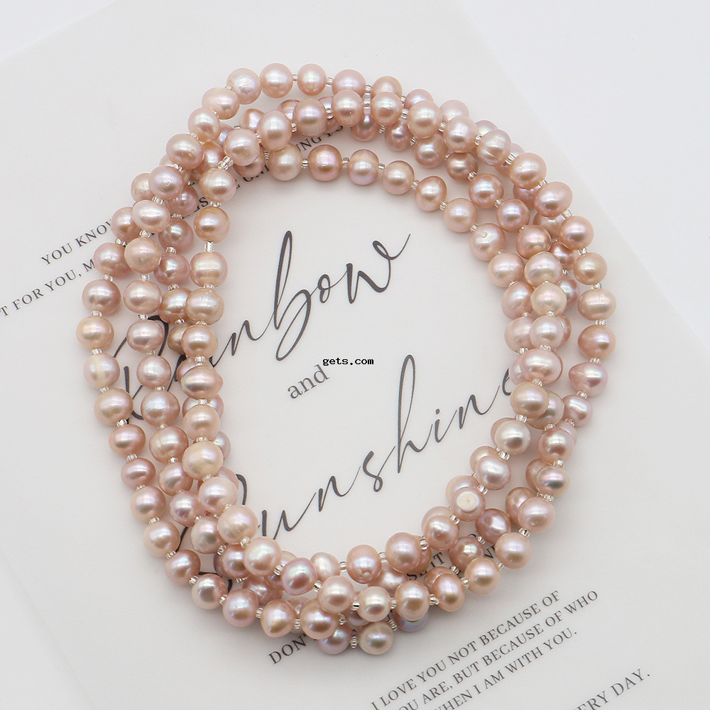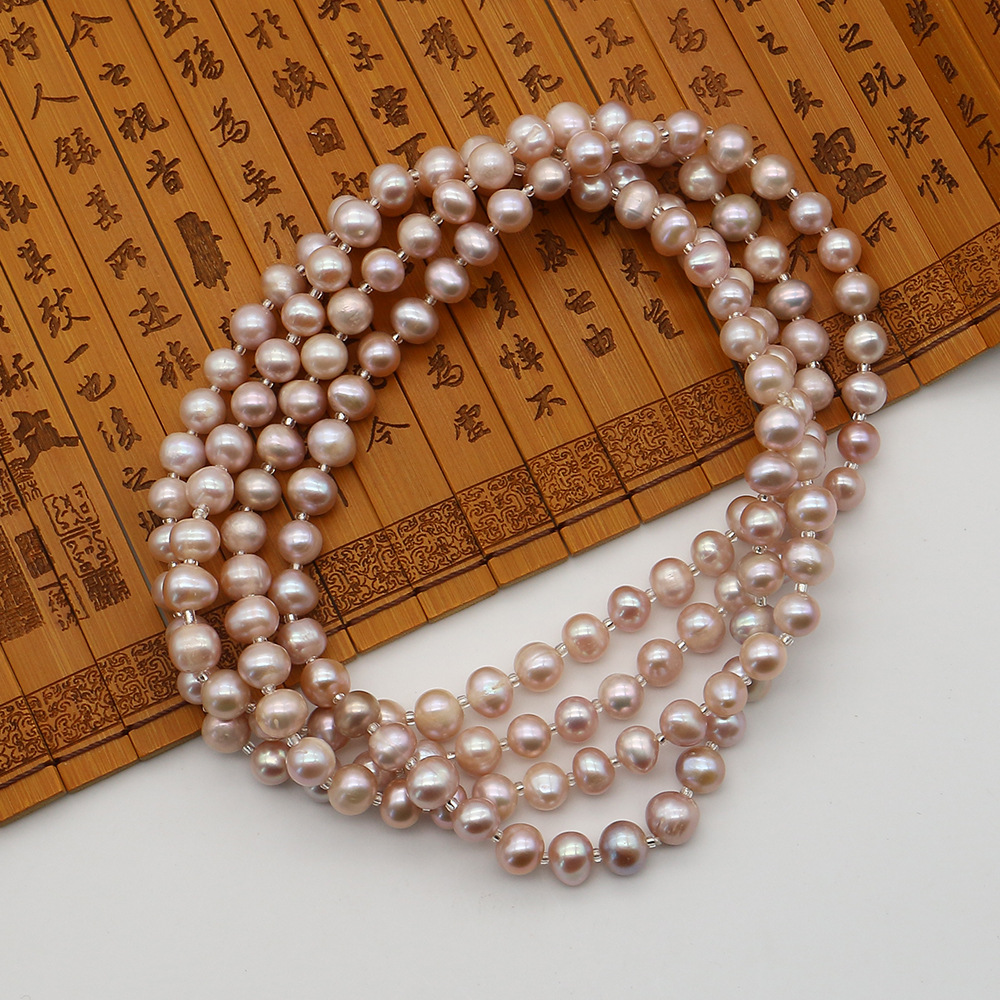 Природное пресноводное жемчужное ожерелье, Пресноводные жемчуги, с Seedbead, Круглая, ювелирные изделия моды, разноцветный, 7-8mm, Продан через 118 см Strand