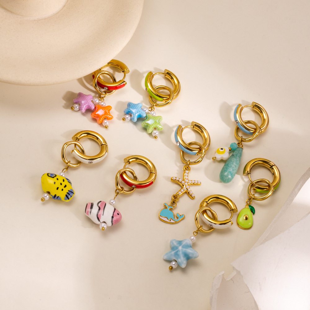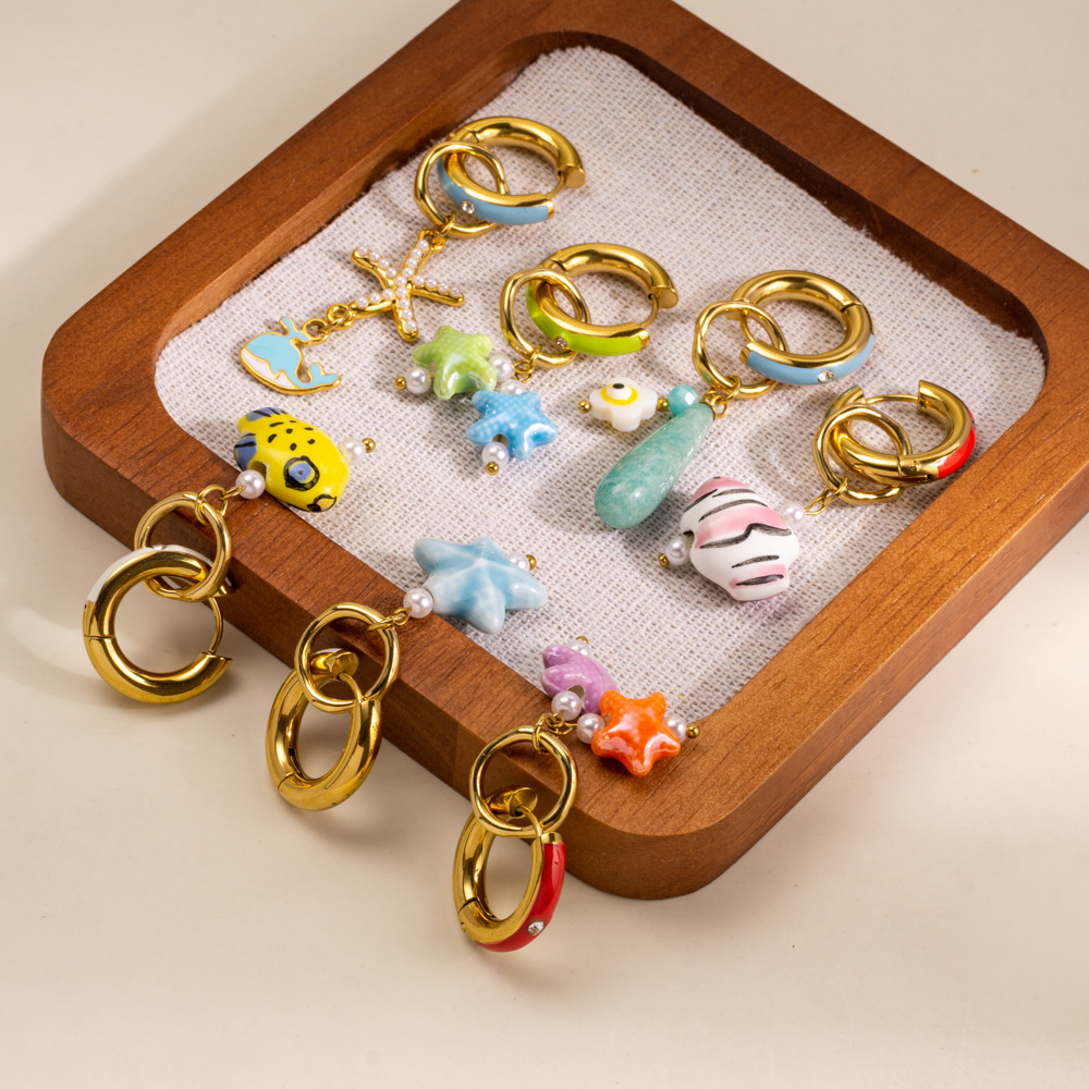 - Серьги из камня, Полудрагоценный камень, с Нержавеющая сталь 304