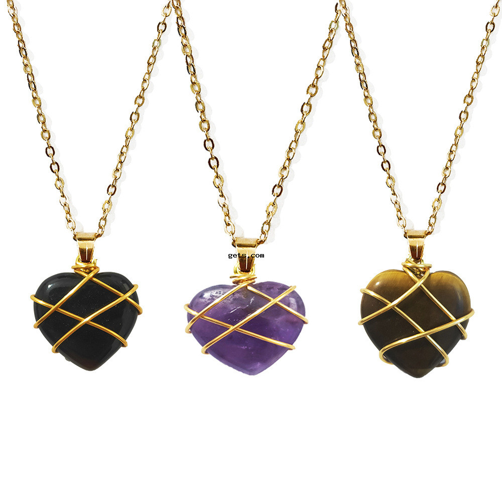 Ожерелья из драгоценных камней, Природный камень, с Латунь, Сердце, ювелирные изделия моды, Много цветов для выбора, 20mm, длина:50 см, продается PC