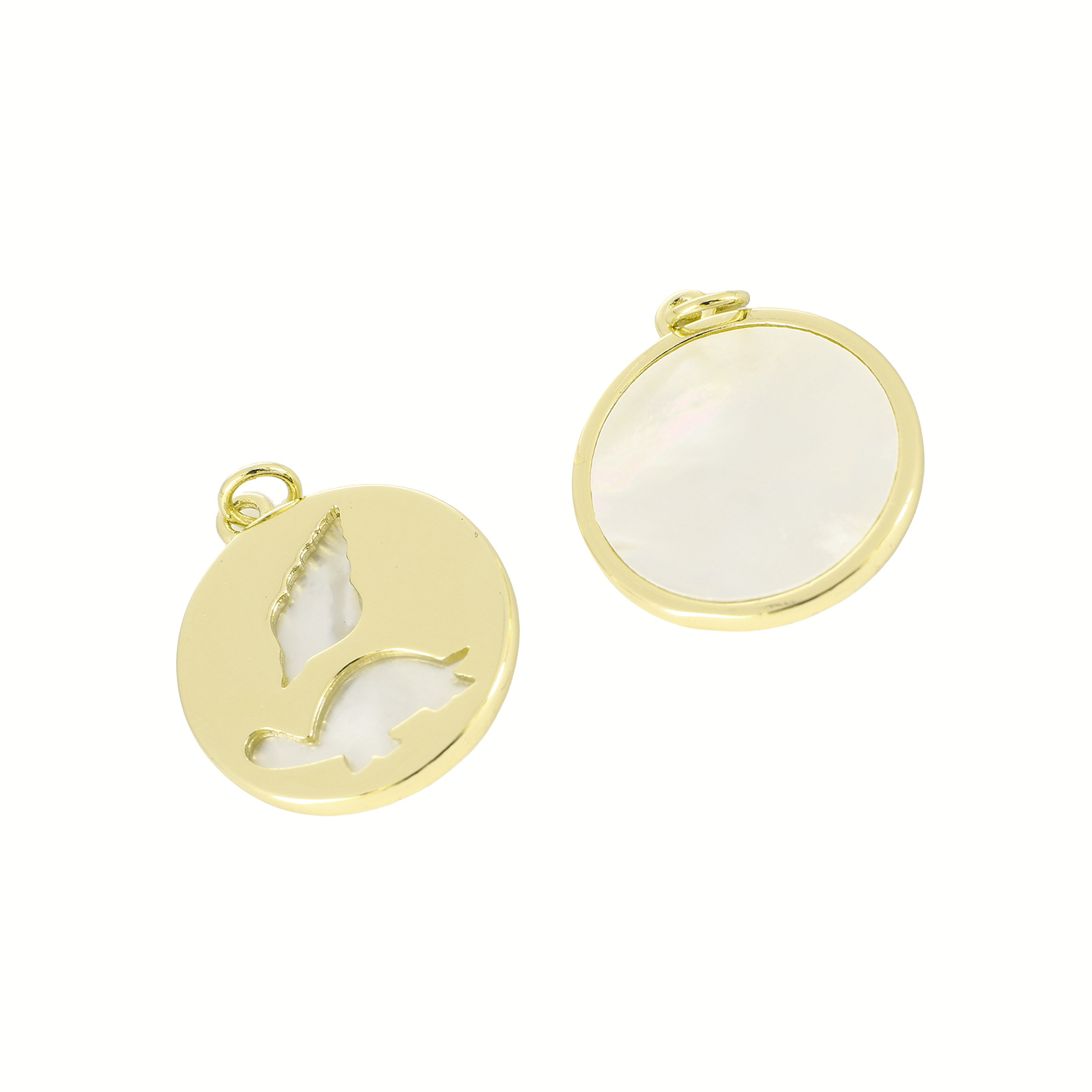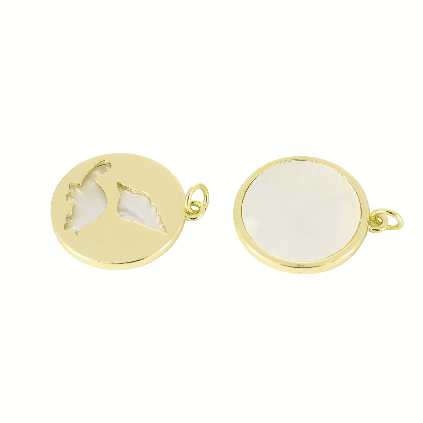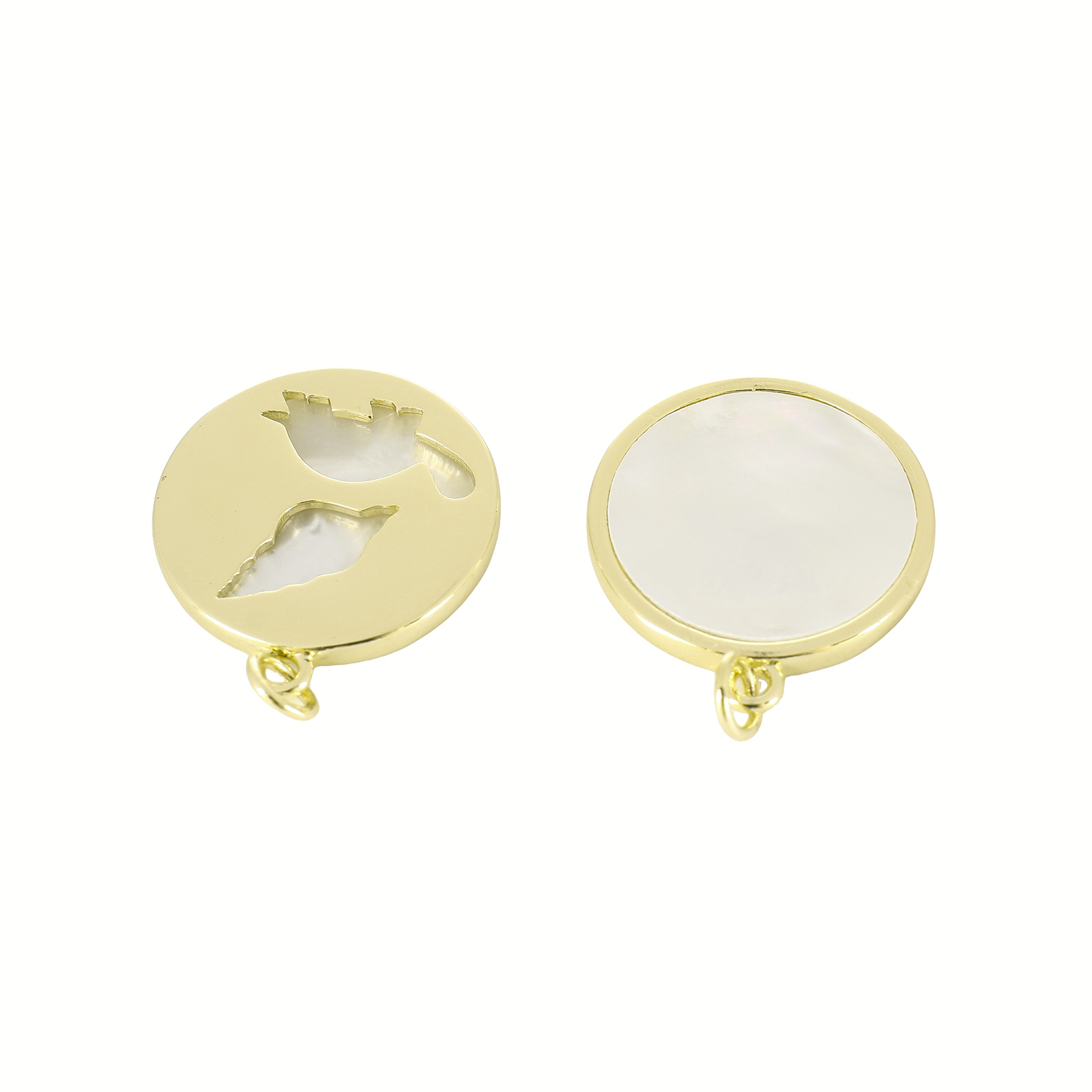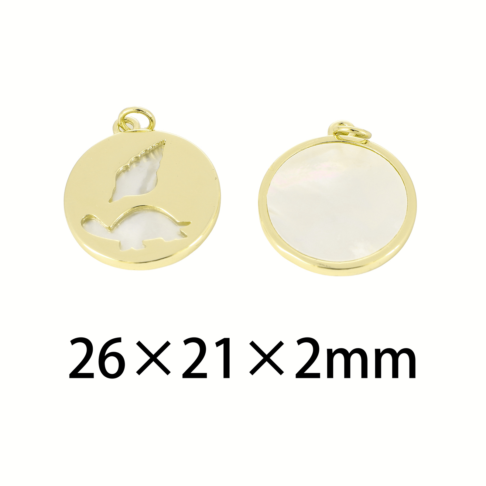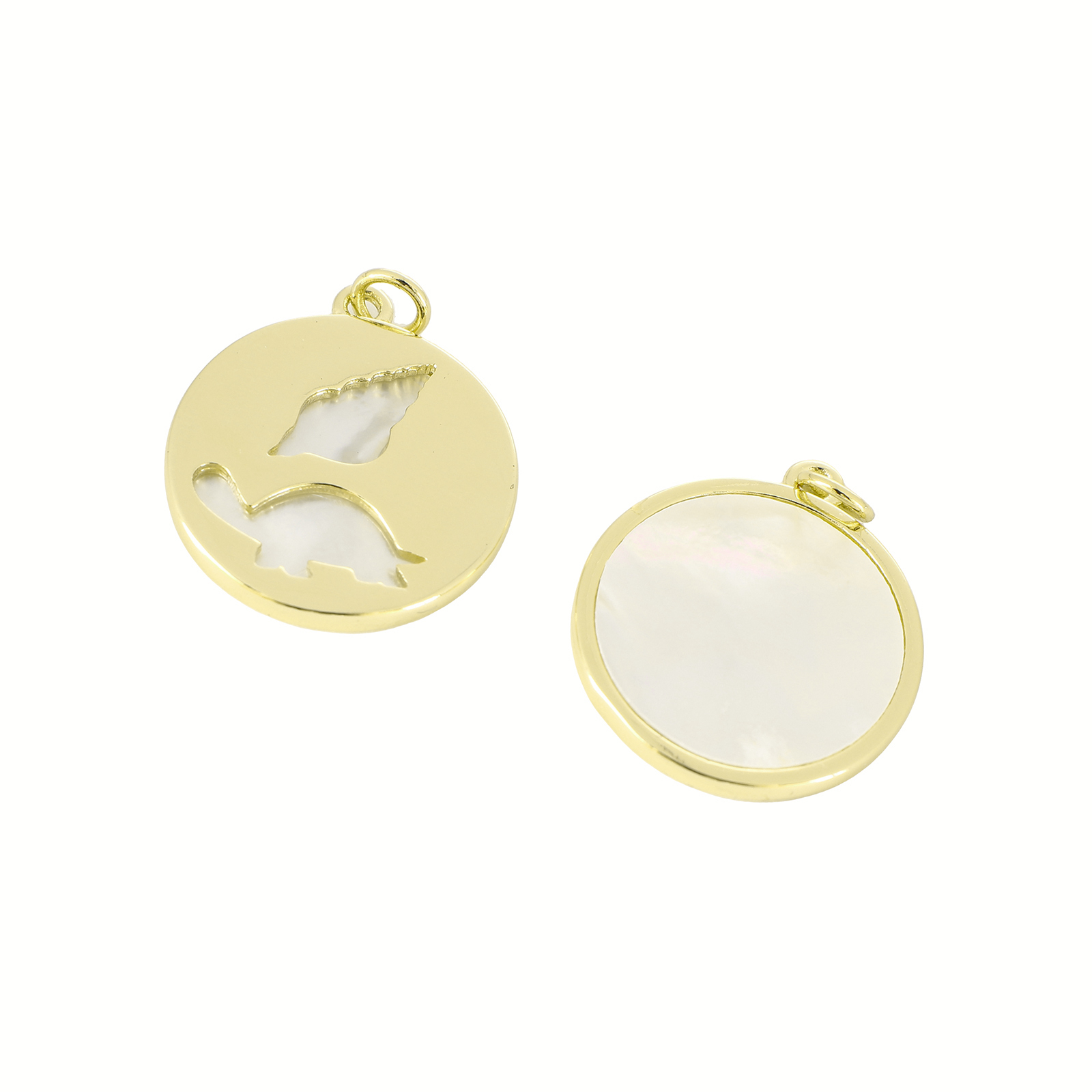 Подвески из натуральных белых ракушек, Латунь, с Белая ракушка, Плоская круглая форма, плакирован золотом, DIY & отверстие, 26x21x2mm, продается PC