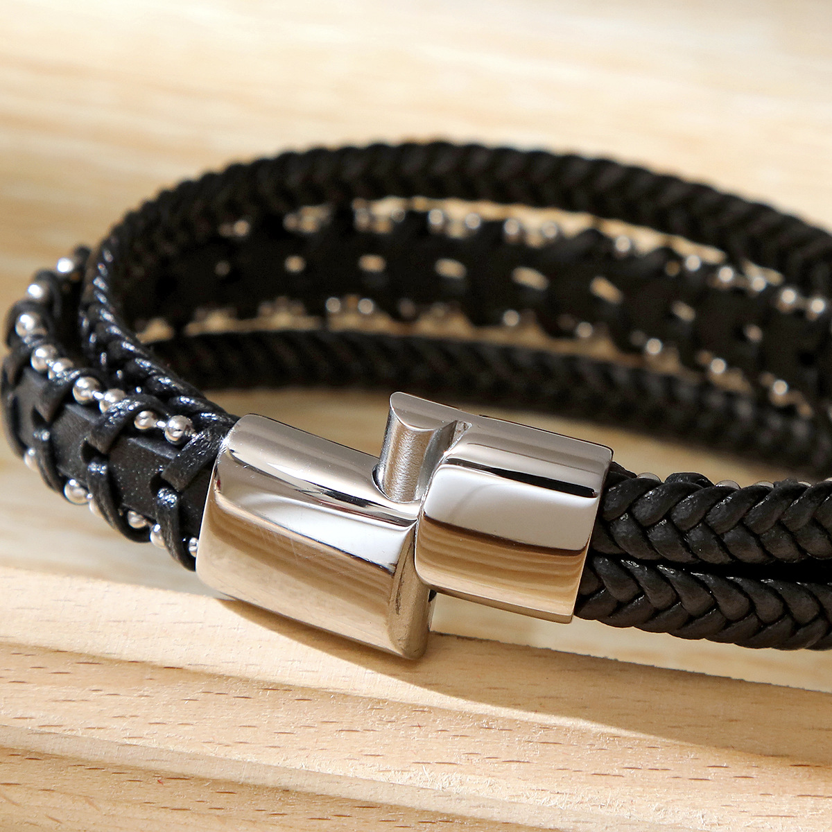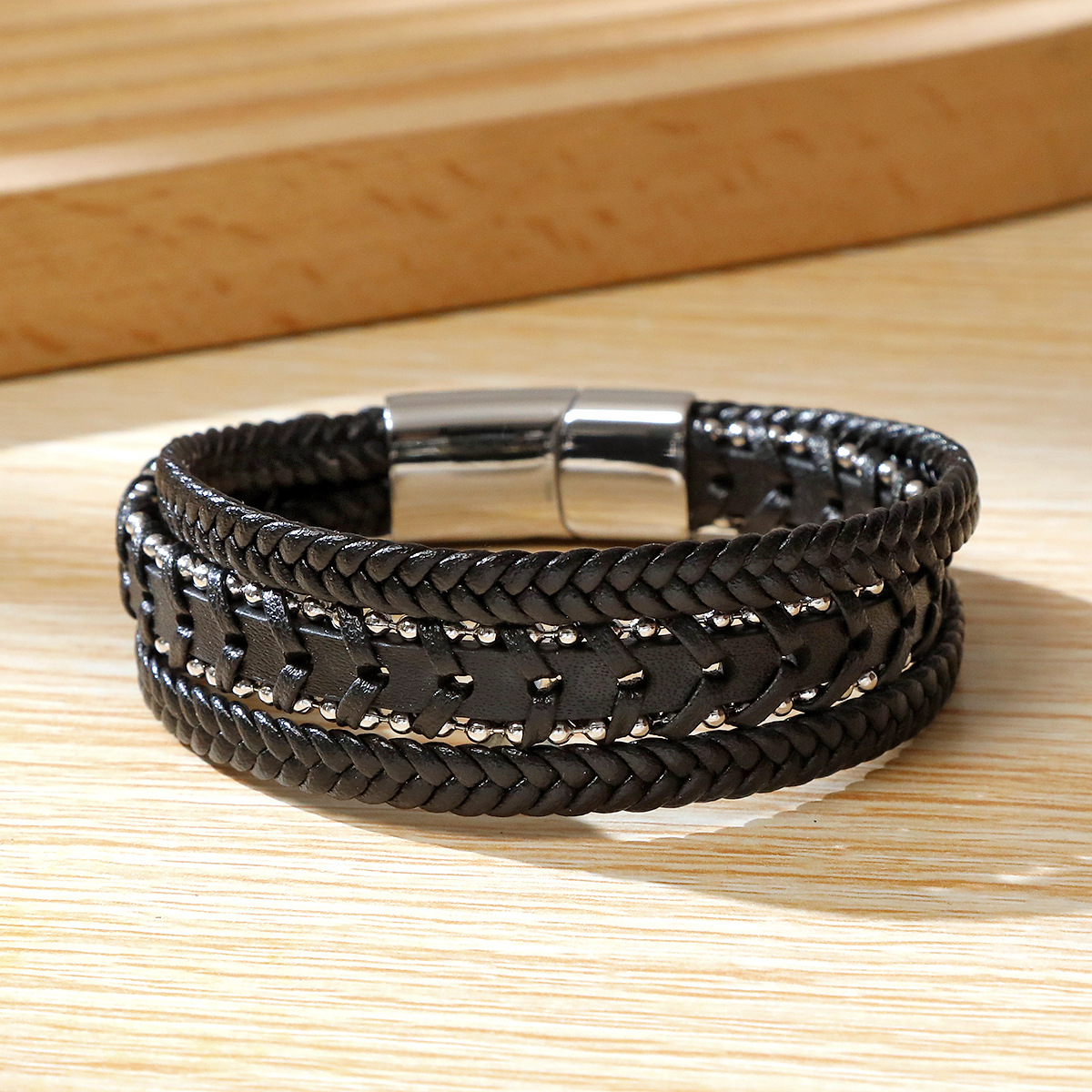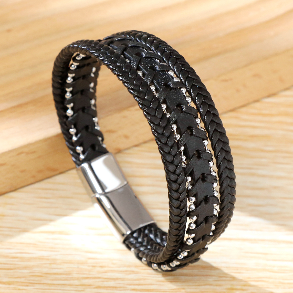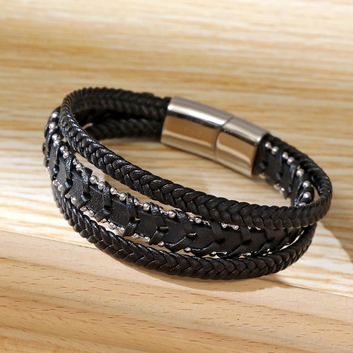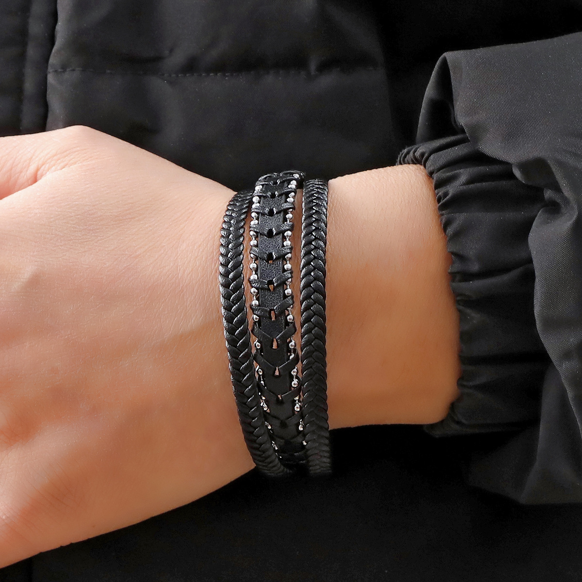 ПУ шнур браслеты, Нержавеющая сталь 304, с Микрофибра PU, Связанный вручную, три слоя & ювелирные изделия моды & Мужский, Много цветов для выбора, длина:21 см, продается PC