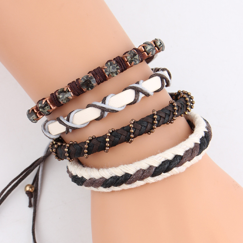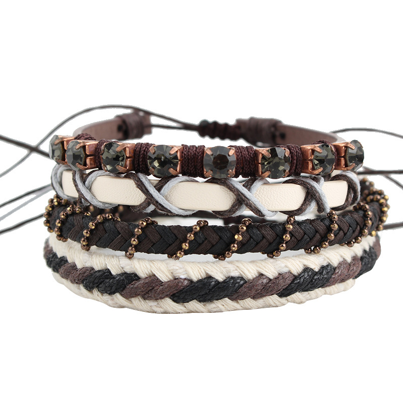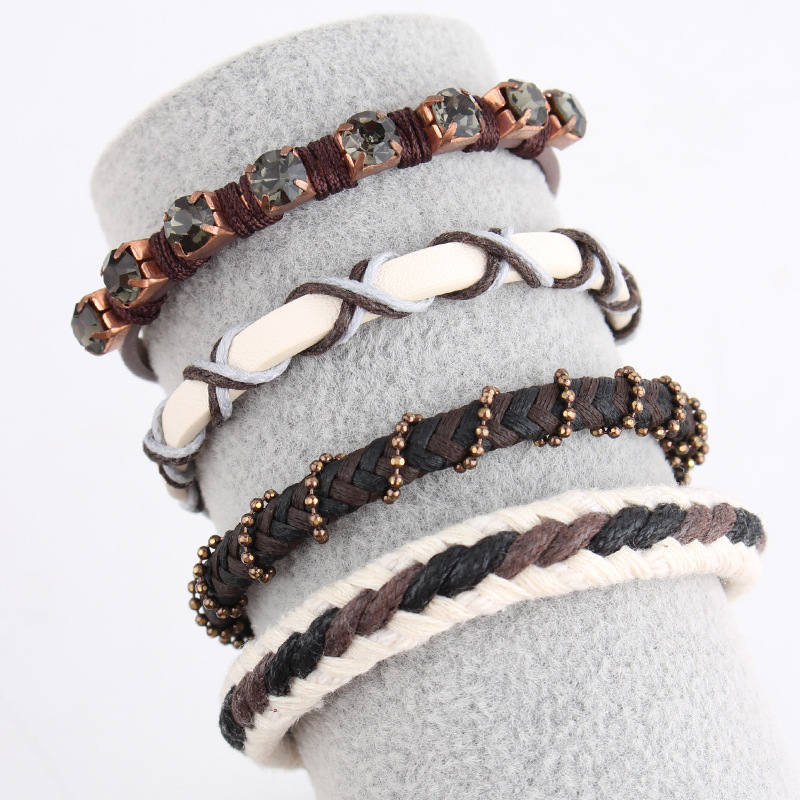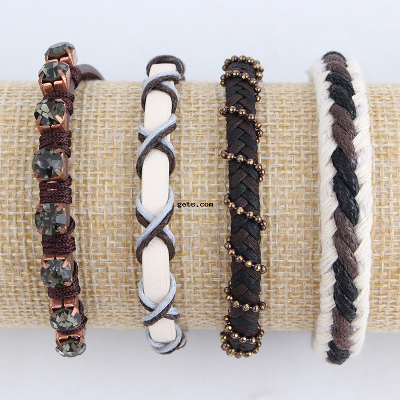 ПУ шнур браслеты, Восковой шнур, с Искусственная кожа & Кристаллы & Латунь, Другое покрытие, ювелирные изделия моды & многослойный, Много цветов для выбора, не содержит никель, свинец, продается PC