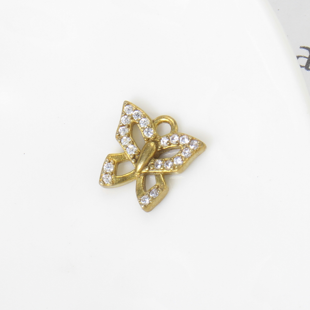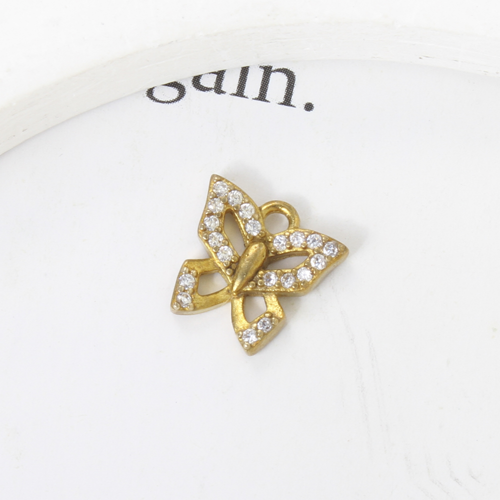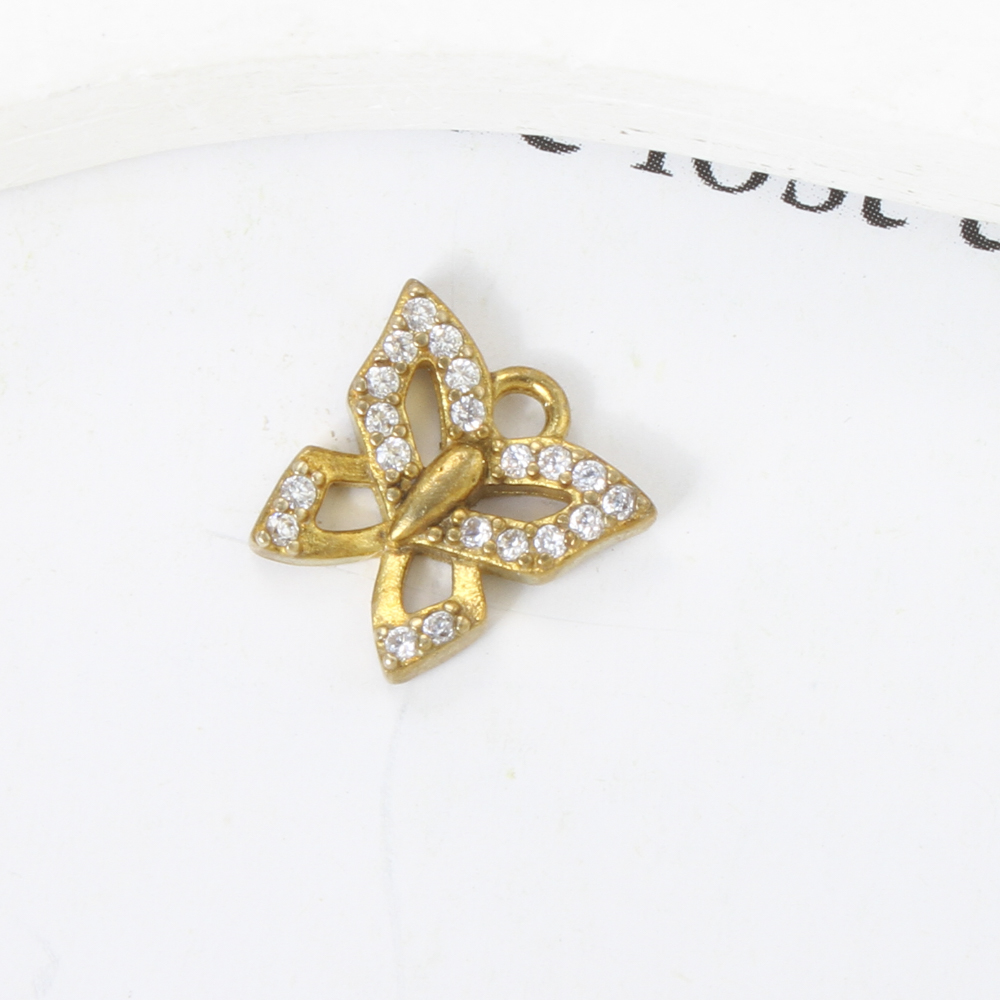 Латунные подвески со стразами, Латунь, бабочка, Другое покрытие, DIY, Золотой, не содержит никель, свинец, 9.60x10x1.90mm, продается PC