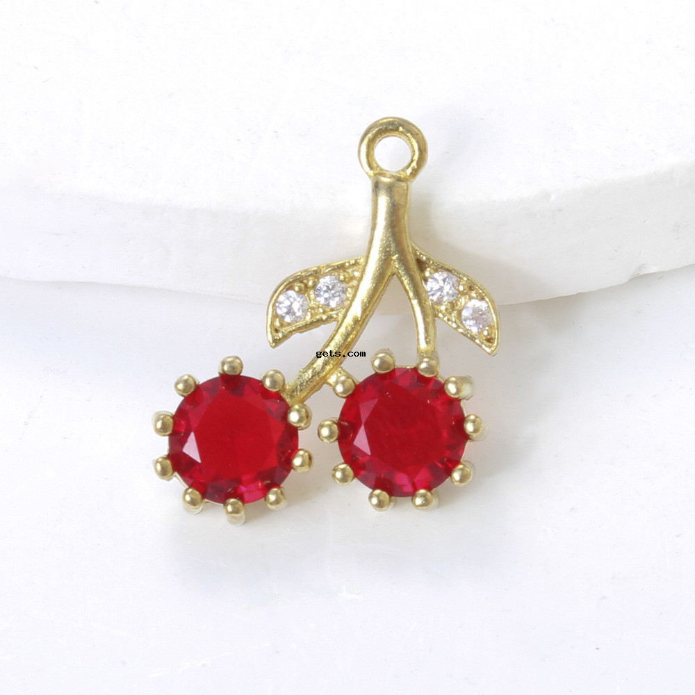 Латунные подвески со стразами, Латунь, Ягода, Другое покрытие, DIY, Золотой, не содержит никель, свинец, 18.40x17x4.50mm, продается PC