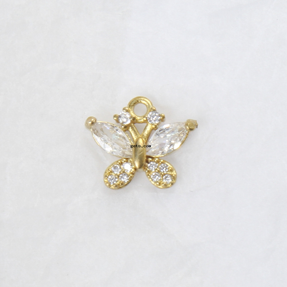 Латунные подвески со стразами, Латунь, бабочка, Другое покрытие, DIY, Золотой, не содержит никель, свинец, 10.50x13x3mm, продается PC