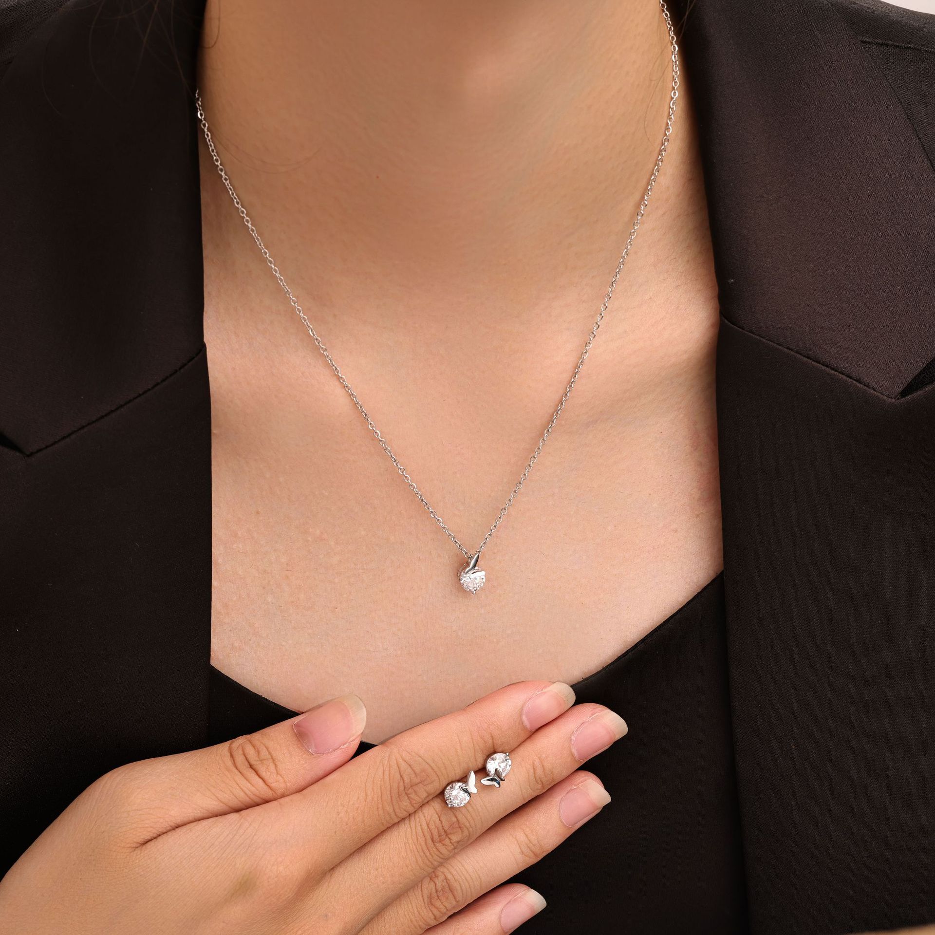 - Стразы Ювелирные наборы, кулон & серьги, нержавеющая сталь